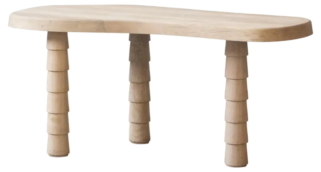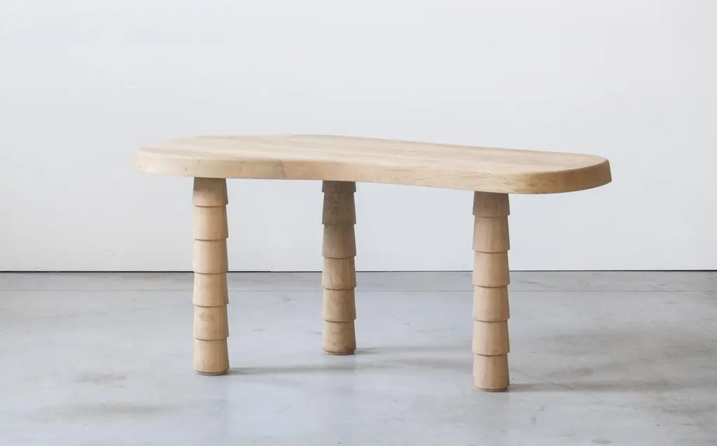 Data table Oak M by Atelier Thomas SerruysDimensions: D 210 x W 110 x H 75cm 3 legsMaterials: OakAvailable in 4 sizes:XS- L 156cm W 82cm/52cm H 75cm – 3 legs S - L 180cm W 94cm/63cm H 75cm – 3 legs M - L 210cm W 110cm/73cm H 75cm – 3 legs L - L 240cm W 120cm/83cm H 75cm – 4 legsFree-shaped top in solid oak, thickness 7cm, with smooth round edges. Demountable hand turned trapezoid shaped legs in oak.After running nine years a vintage design gallery in the centre of the medieval city Bruges, and four years an atelier in the port of Ostend, later in ‘ Zavemtem Ateliers ‘, The company moved mid 2020 to one of the remaining late 19th century brick warehouses on the ringway of Bruges. It was build in 1864 by the family Dujardin to settle a cotton spinnery, later purchased by Union Cottonière, colloquially known as ‘ ‘Tkatoentje ‘. As we are restoring the building, this authentic place will household our atelier, a selected collection of fine vintage design, and for the occasion exhibitions with curated works of art.