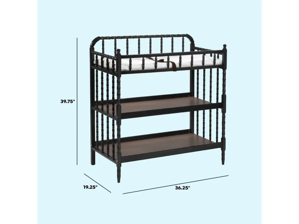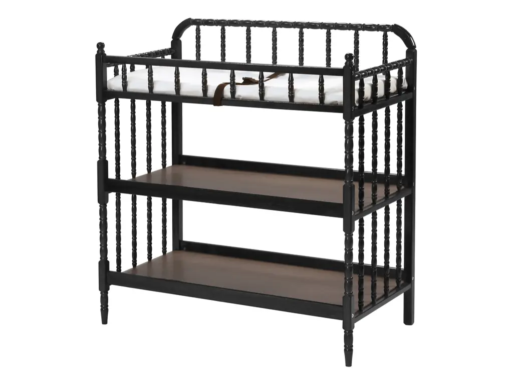Delight in traditional beauty with DaVinci's Jenny Lind Changing Table. Intricate spindle posts deliver classic grace from top to toe, for a perfect pairing with the Jenny Lind Crib. Spacious, open shelves keep diapers and lotions within easy reach for convenient changings. Coordinates with the Jenny Lind 3-in-1 Convertible Crib.