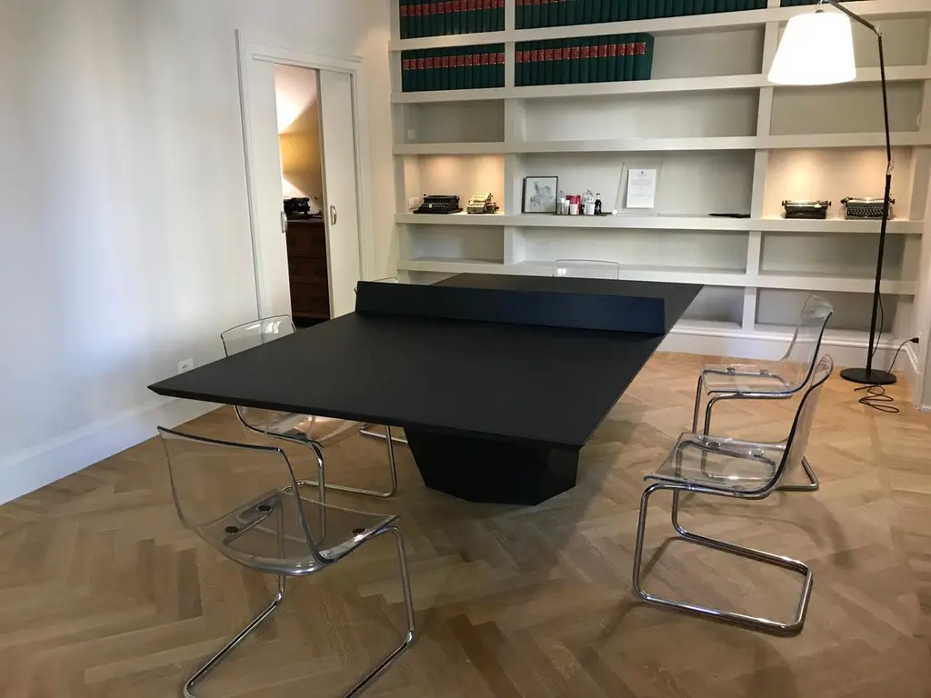 Deceptor: The Deceptor is a complete ping pong set (a full size ping pong table and two multi-faceted paddles) that completely reinvents the game. Created in robust stainless steel, the Deceptor facilitates outdoor play. The faceted paddles, like stealth fighters, enable the player to execute trick shots while the custom ping pong balls fly through the air, unaffected by wind. Available in stealth black and pure white powder coated steel finishes.