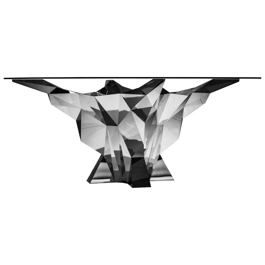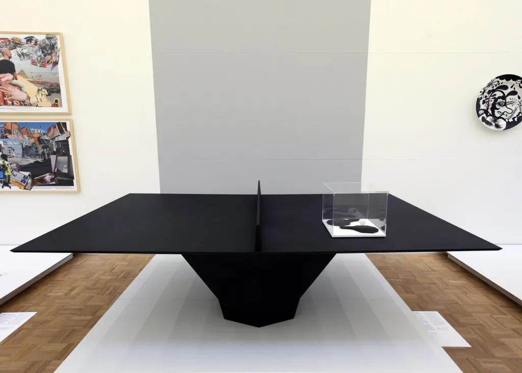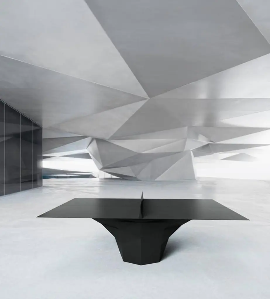 Deceptor: The Deceptor is a complete ping pong set (a full size ping pong table and two multi-faceted paddles) that completely reinvents the game. Created in robust stainless steel, the Deceptor facilitates outdoor play. The faceted paddles, like stealth fighters, enable the player to execute trick shots while the custom ping pong balls fly through the air, unaffected by wind. Available in stealth black and pure white powder coated steel finishes.
