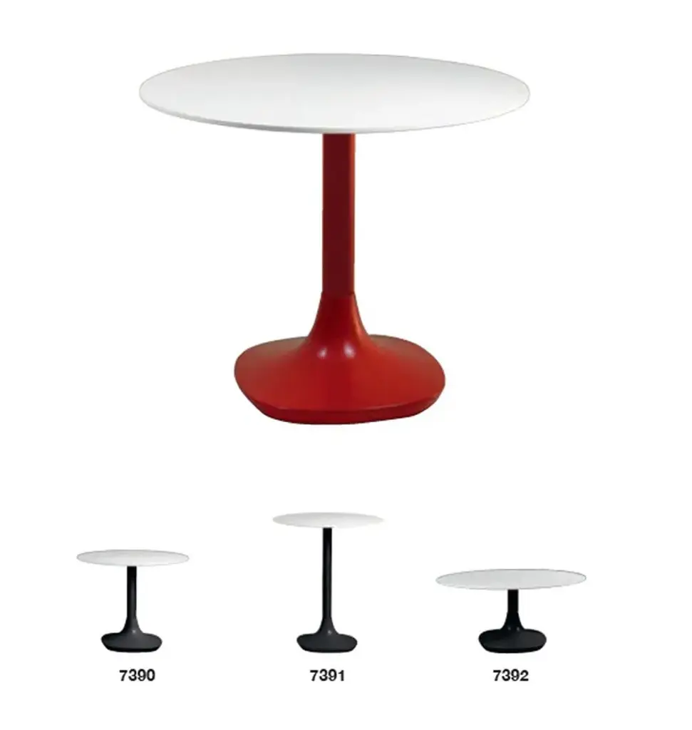 Unicolor table base with concrete pedestal and powdercoated metal stand. It can be used outdoor or indoor, available in different heights.