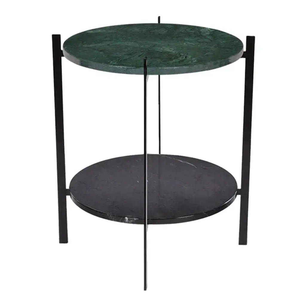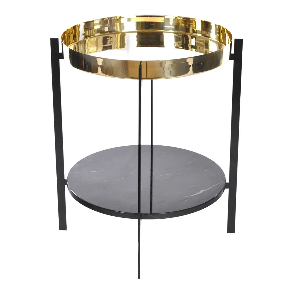 Frame made in powder coated steel or brass (steel with brass surface). Marble tops are to be screwed on to the metal frame. Glass tops can be clicked onto the frame. Leather tables will be delivered assembled. Table tops in Carrara Marble, Black Marquina, Green Indio, or Brown Emperador will exhibit natural variations in terms of colour, drawings and patterns characteristic for each type of marble. As for Carrara Marble, small cracks can sometimes be found on the polished surface. This phenomenon known as “taroli" is a natural characteristic of the stone, which cannot be eliminated completely. Leather is handmade by skilled craftsmen using high-quality 100 % vegetable tanned aniline leather with a general thickness of 3 mm or more. Natural imperfections on leather surface must be accepted. With time, light and use, the leather will gain depth and lustre as it ages. Due to the highly artisan process used and variation in the natural raw material, leather can wary quite significantly in colour between production batches.