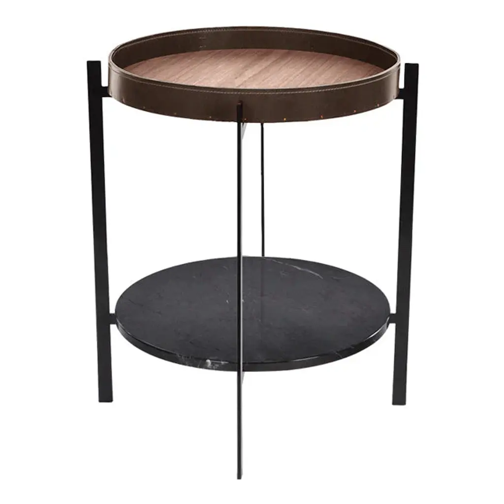 Frame made in powder coated steel or brass (steel with brass surface). Marble tops are to be screwed on to the metal frame. Glass tops can be clicked onto the frame. Leather tables will be delivered assembled. Table tops in Carrara Marble, Black Marquina, Green Indio, or Brown Emperador will exhibit natural variations in terms of colour, drawings and patterns characteristic for each type of marble. As for Carrara Marble, small cracks can sometimes be found on the polished surface. This phenomenon known as “taroli" is a natural characteristic of the stone, which cannot be eliminated completely. Leather is handmade by skilled craftsmen using high-quality 100 % vegetable tanned aniline leather with a general thickness of 3 mm or more. Natural imperfections on leather surface must be accepted. With time, light and use, the leather will gain depth and lustre as it ages. Due to the highly artisan process used and variation in the natural raw material, leather can wary quite significantly in colour between production batches.