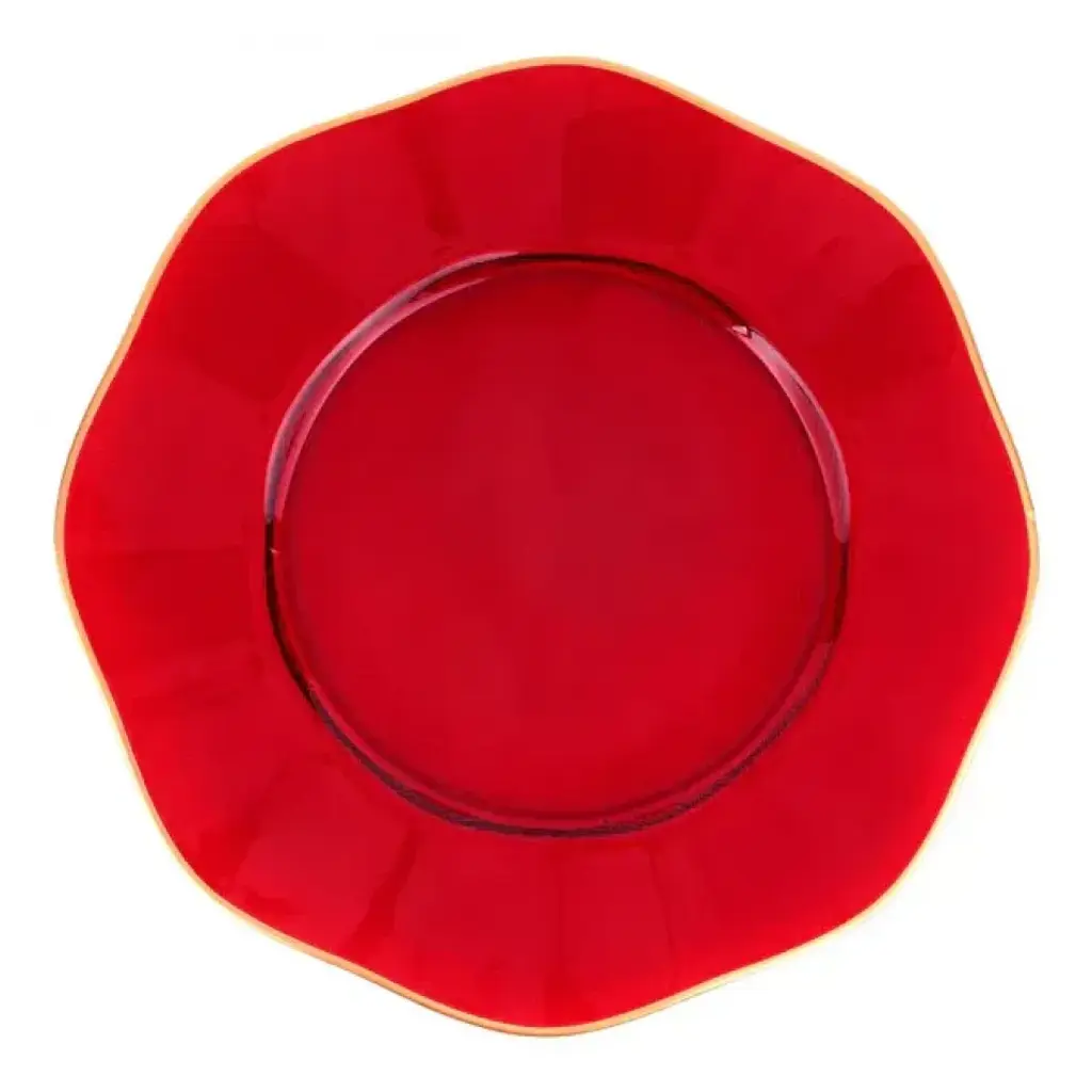 Decorative Glitter Charger Plate, 13" Round Holiday Tabletop Charger Plate - Red