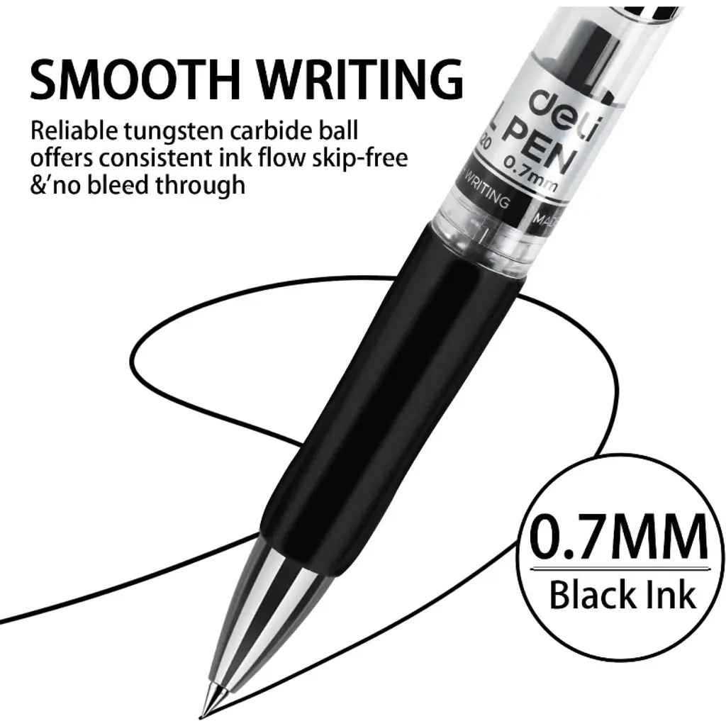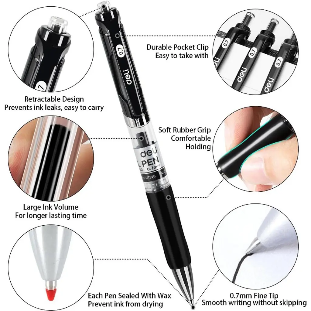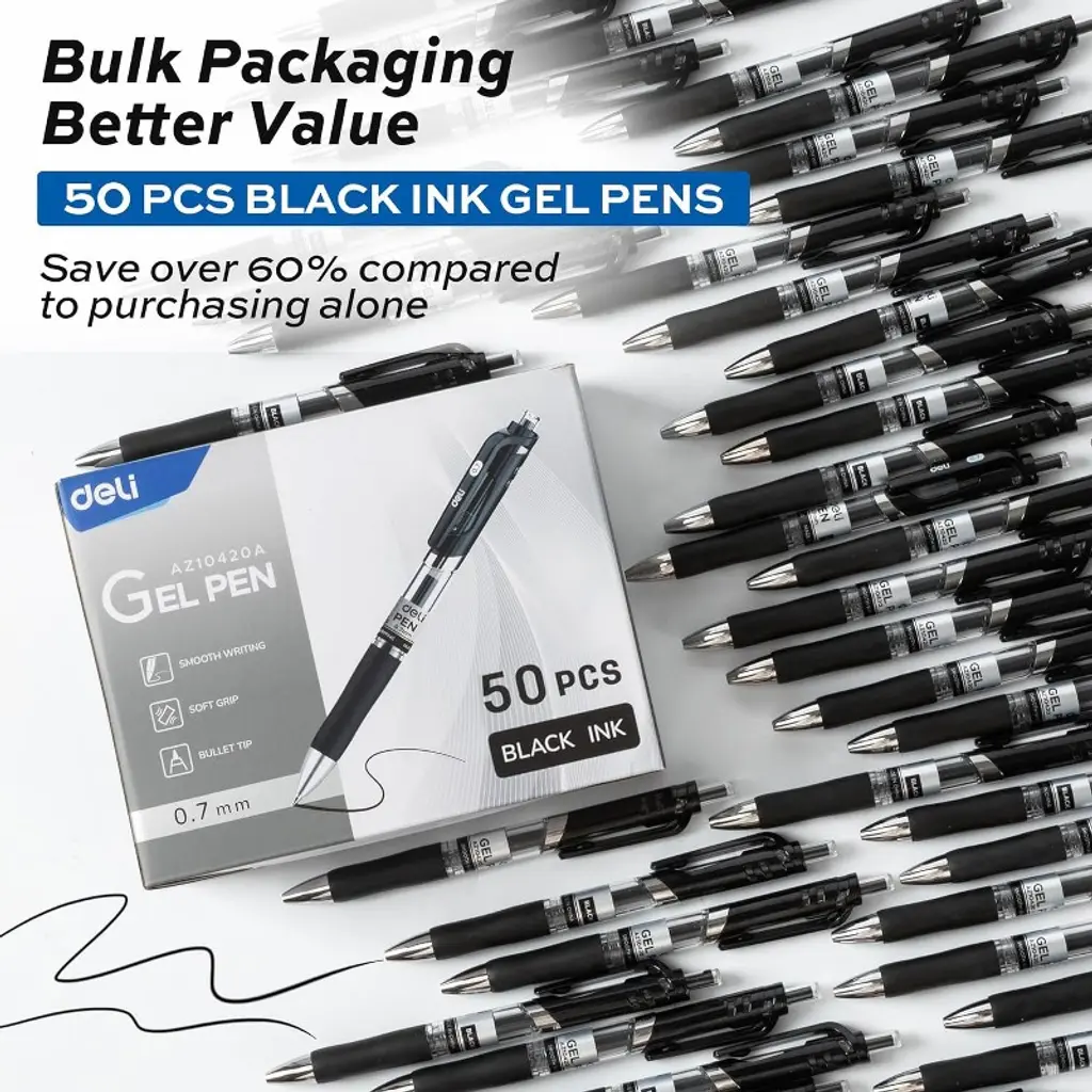 Deli 0.7mm Gel Pens, 50 Pcs Retractable Pens Black Ink, Medium Point Pen, Smooth Writing, Fast Dry, No Bleed For Journaling Note Taking