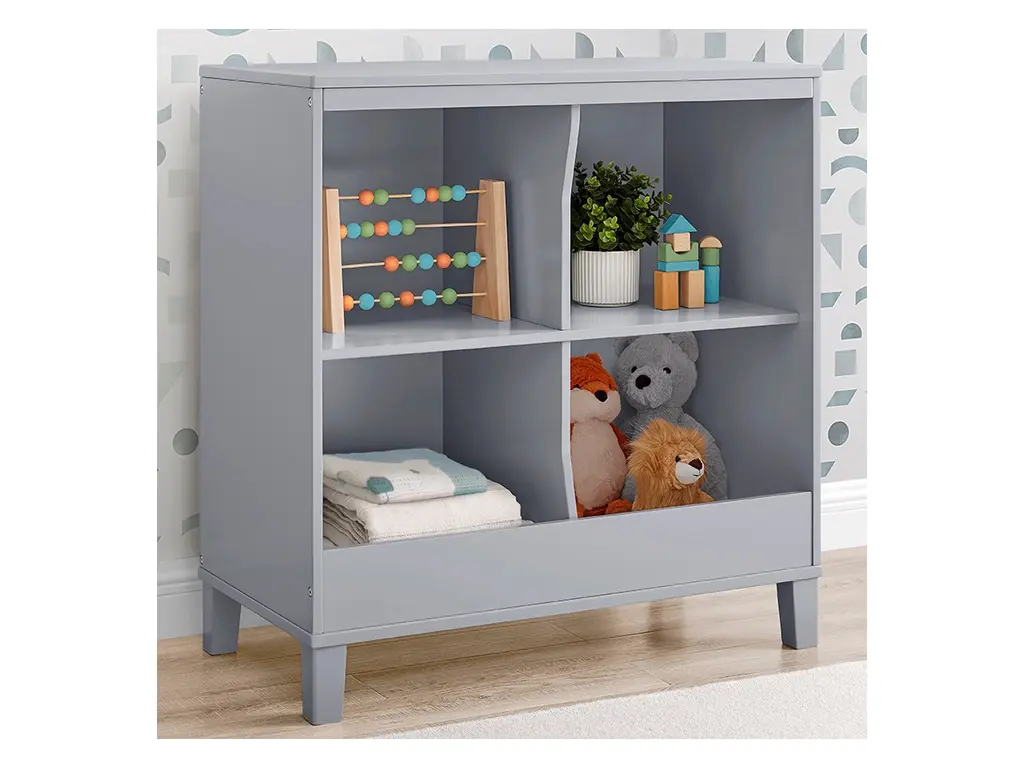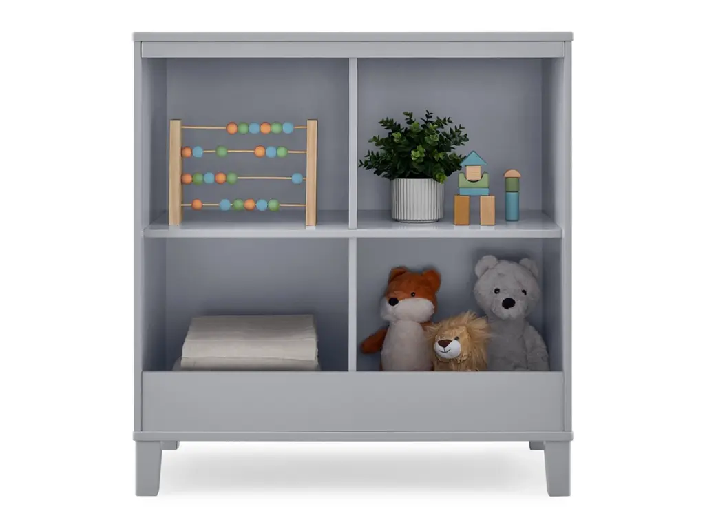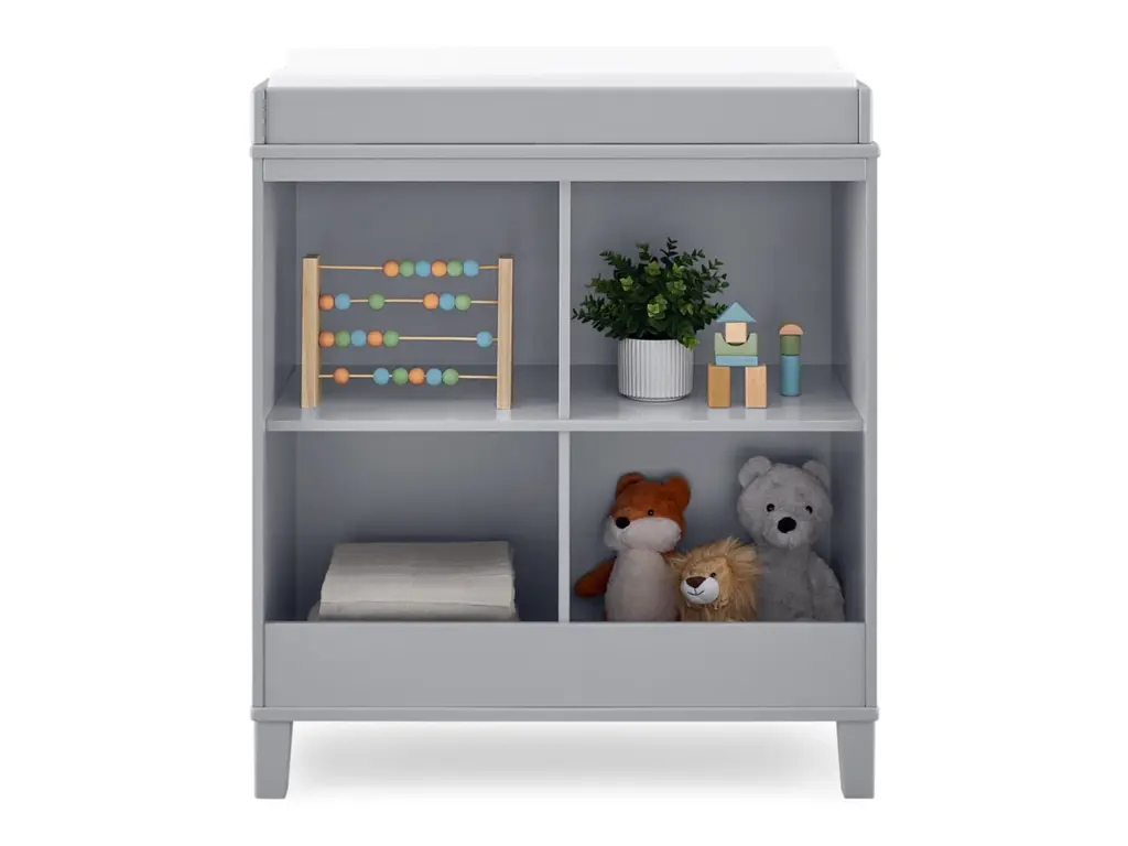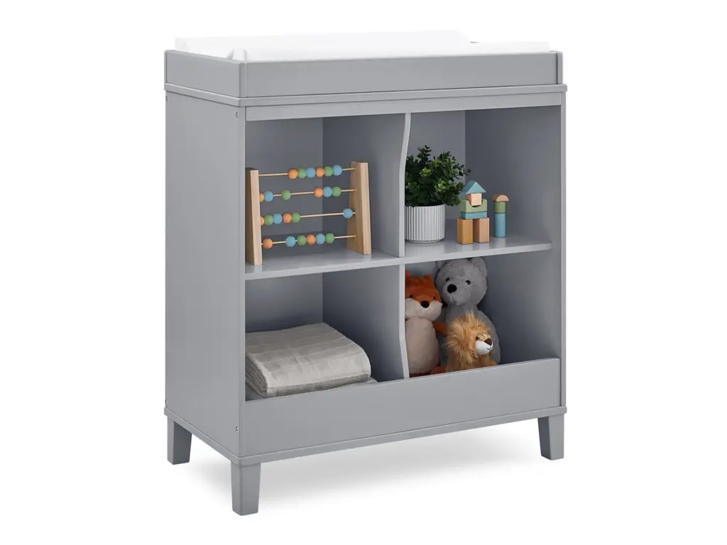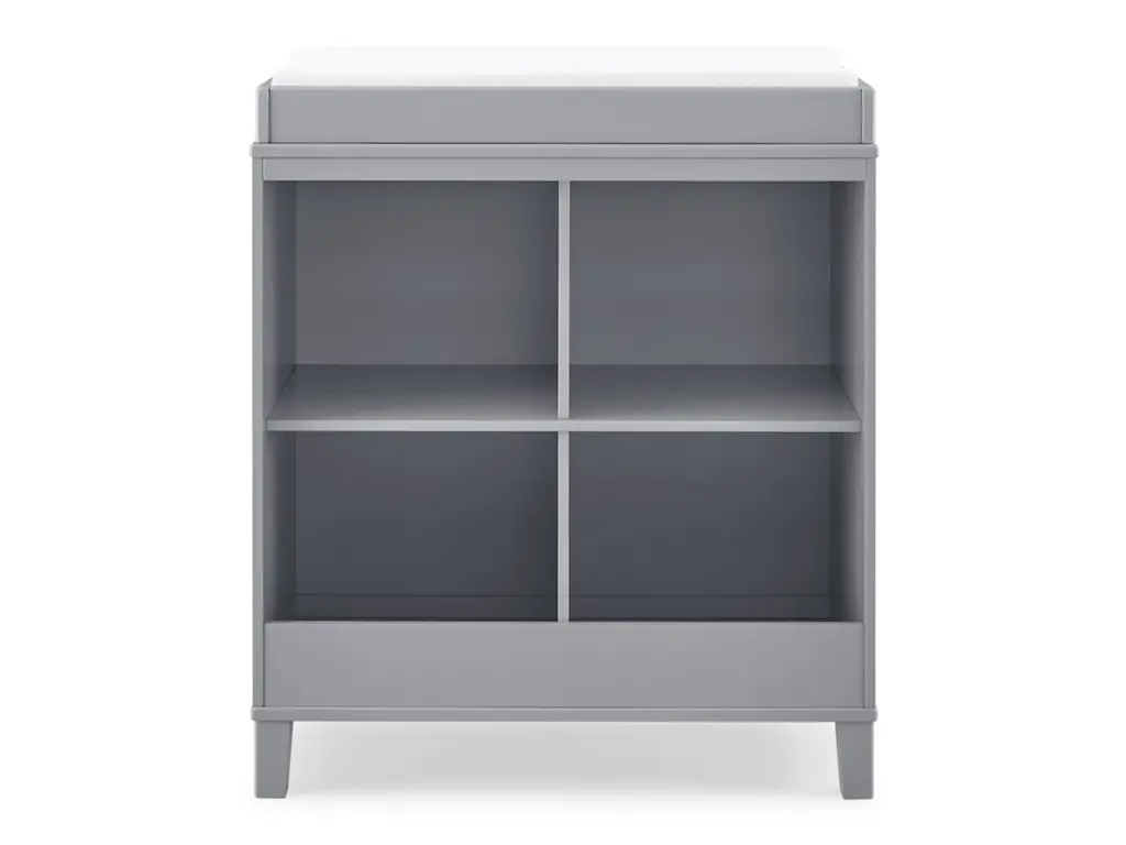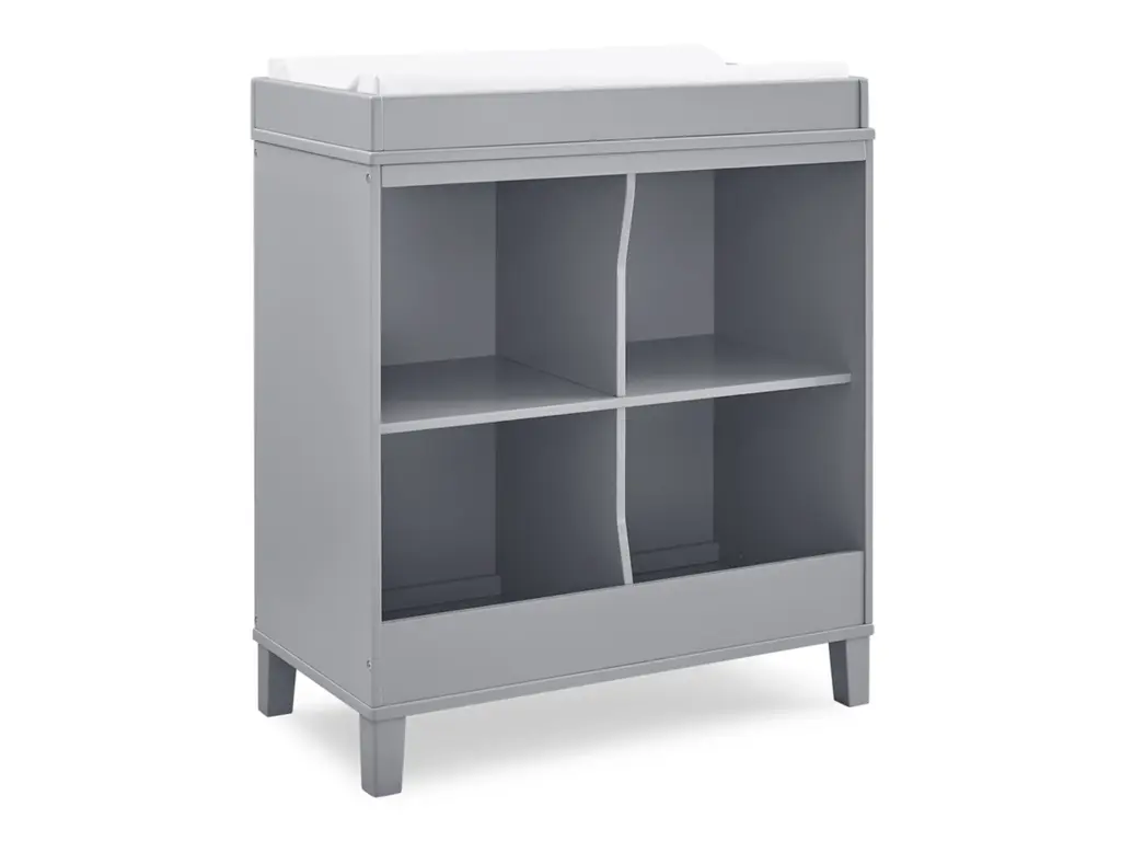 Change diapers and keep baby's necessities within reach with the stylish, modern Huck Convertible Changing Table by Delta Children. The four open cubbies provide plenty of storage space and the included changing topper keeps the changing pad firmly in place (changing pad sold separately). Best of all, its innovative 2-in-1 design allows the changing topper to be easily removed once your child is potty-trained, effortlessly converting the piece into a standalone storage piece. A great option that will grow with your child, from nursery to big-kid room, the Huck Convertible Changing Table by Delta Children is also ideal for shared bedrooms, or anywhere you need a space-saving storage piece. Available in gray or Bianca White, and coordinates with other items from Delta Children in the same finish.