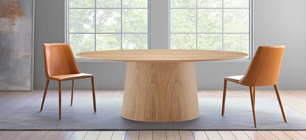 The Deodat Oval Table can handle large and meaningful dinner parties, as well as a large and tasty buffet. The wide base gives the table a sturdy presence and the look of permanence.