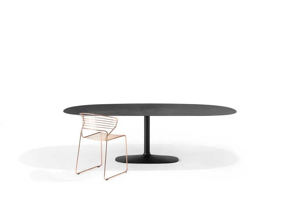 A collection of tables with an essential design and archetypal shapes, with a dual purpose for indoor and outdoor use in both domestic and collective spaces. An almost monolithic, clear presence, a silhouette that stands out in the space connoting it with character and style.Family of tables with cast iron base and steel tube.Top in ceramic, available in indoor or outdoor version.Base finishes:• B13 sabbia• B42 grafite• B56 ruggine• B59 matt black• B62 matt white• B82 grey• B85 moss greenTop P1:• D85 cemento ceramic • D86 asfalto ceramic• D87 lava ceramic • D93 Sahara ceramic• D94 industrial white ceramic• D95 industrial grey ceramicTop P2:• D84 white calce ceramic• D90 glossy white statuario ceramic• D92 glossy black marquina ceramicAvailable in different options, please inquire with usDIMENSIONS:115 x 200 x 73 cm120 x 240 x 73 cmDifferent configurations available, please inquire with us