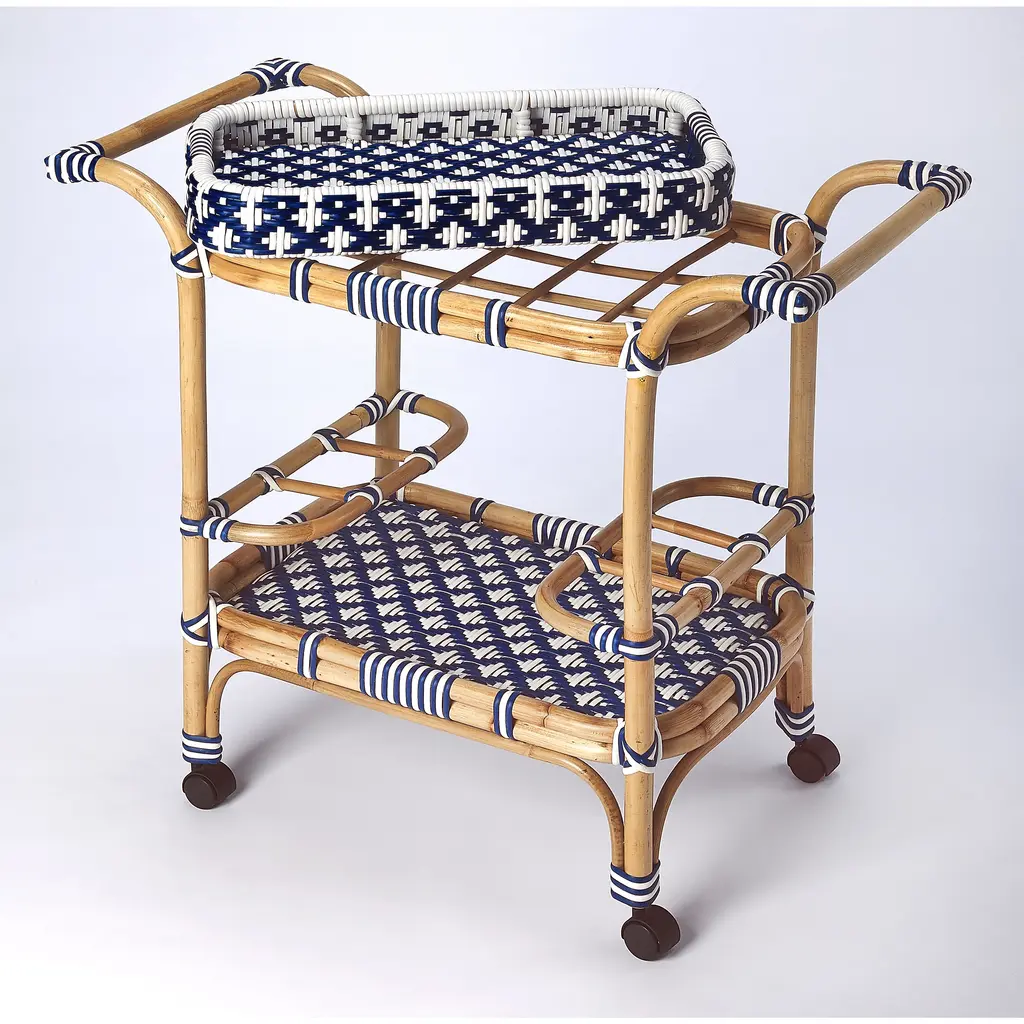 Butler Specialty Company Selena & Rattan Bar Cart, Blue