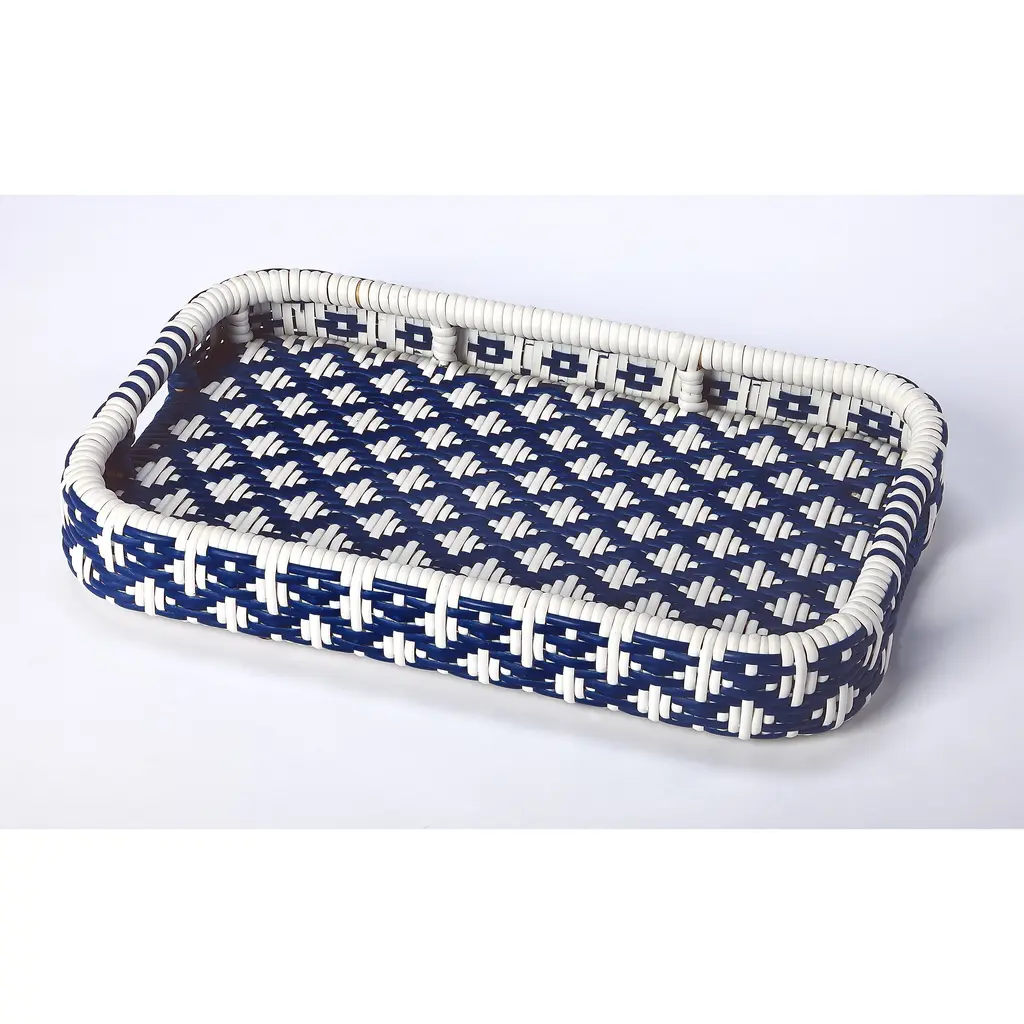 Designer's Edge Selena Blue & White Rattan 34 X 16 Inch Blue Serving Table