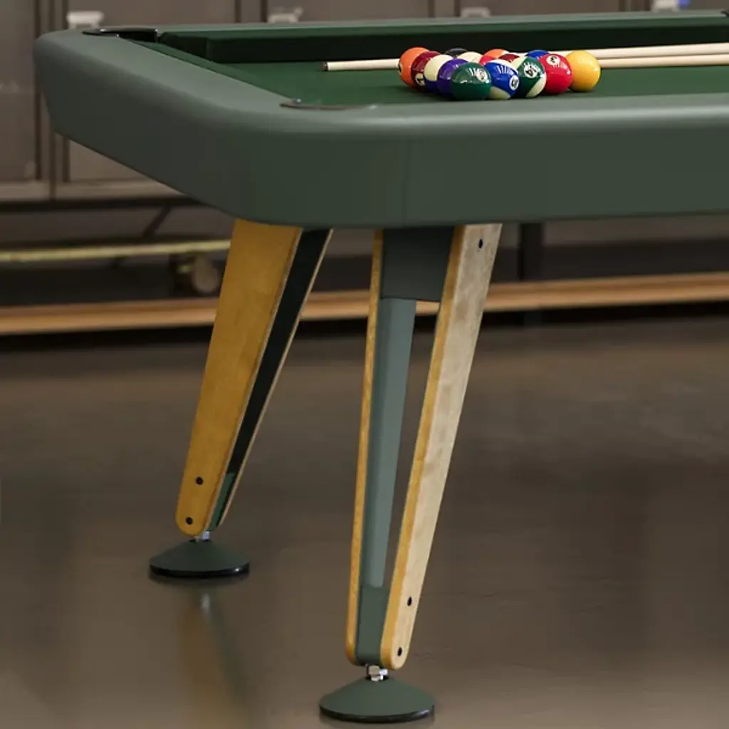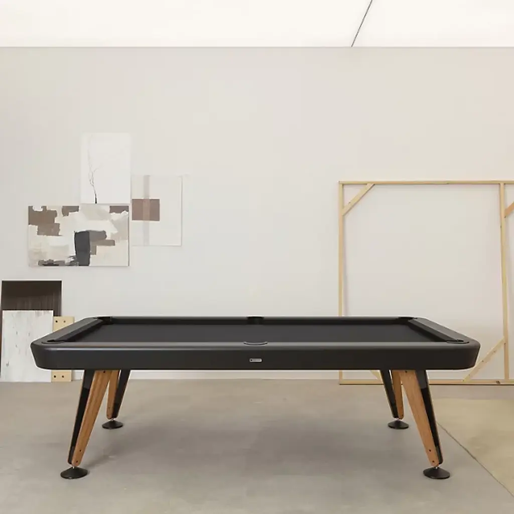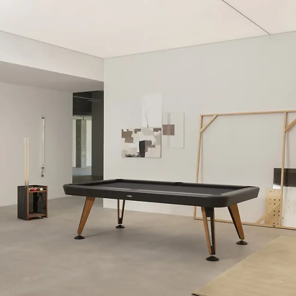 Crisp and elegant, the Diagonal Pool Table from RS Barcelona is the premier option for casual or hardcore billiard players alike. Whether you’re looking for a central eye-catching piece for a grand front room or adding yet another piece to the game room, this table works well in a range of home decors. The structure is made of steel with polyester paint and the legs from a variety of breath-taking woods. Rubber cushions keep the table in place, ensuring play can continue for years to come