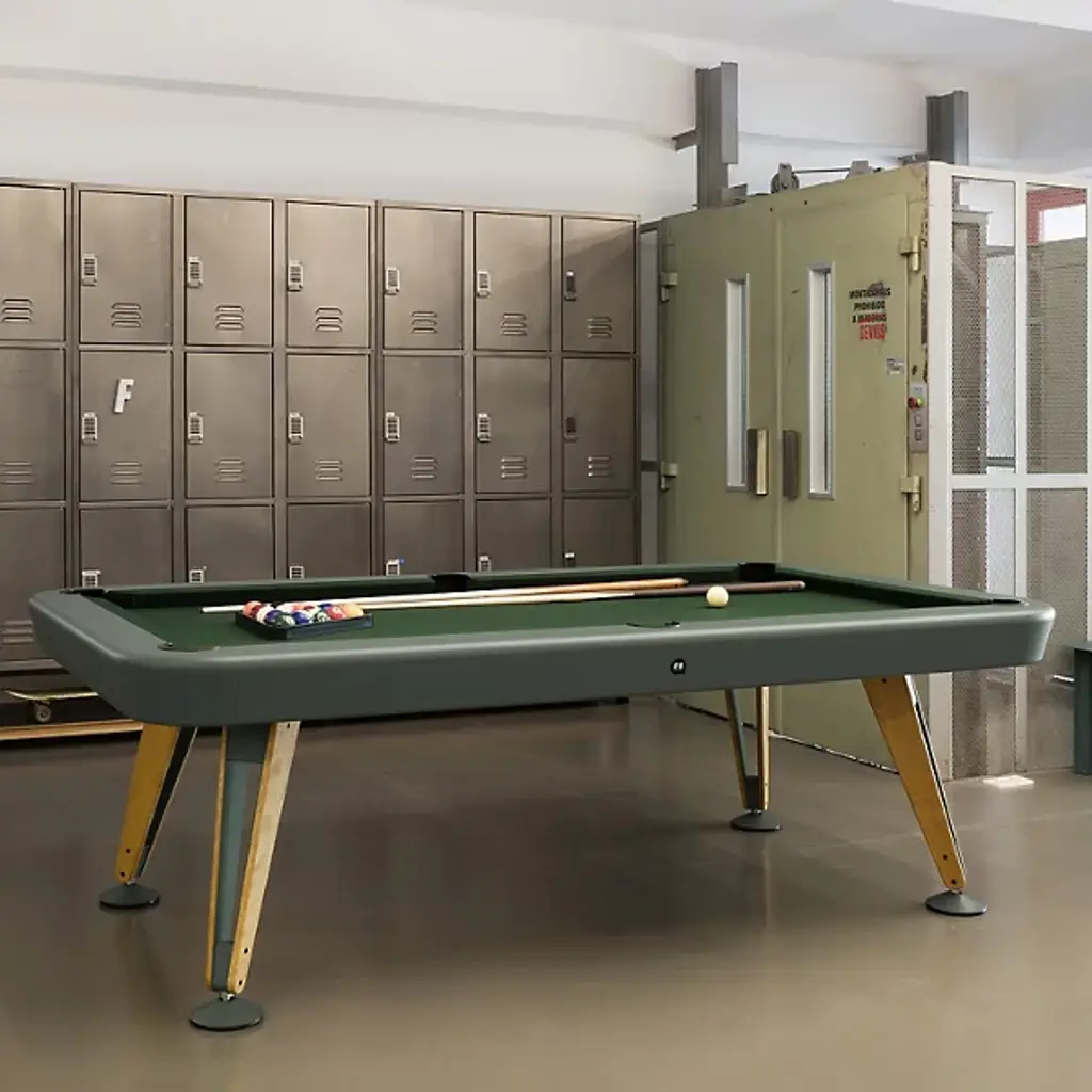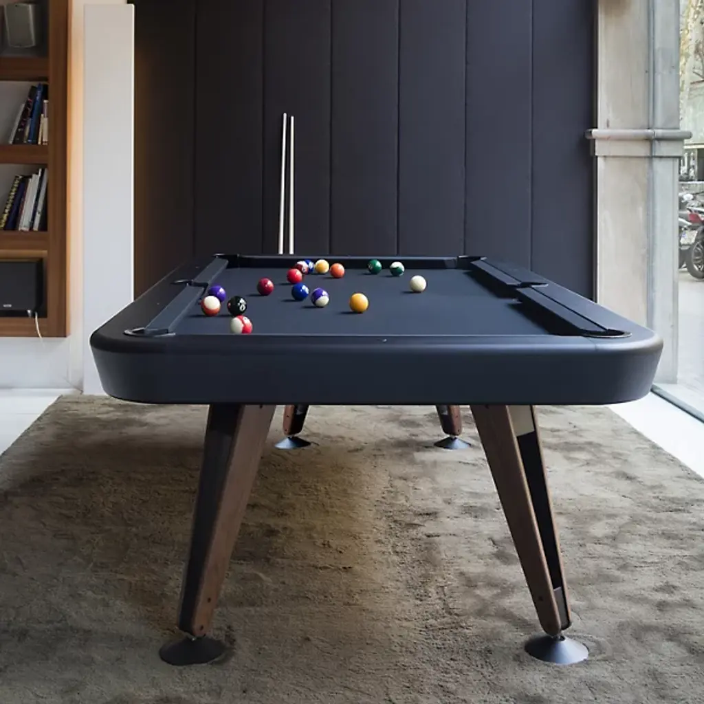 Crisp and elegant, the Diagonal Pool Table from RS Barcelona is the premier option for casual or hardcore billiard players alike. Whether you’re looking for a central eye-catching piece for a grand front room or adding yet another piece to the game room, this table works well in a range of home decors. The structure is made of steel with polyester paint and the legs from a variety of breath-taking woods. Rubber cushions keep the table in place, ensuring play can continue for years to come