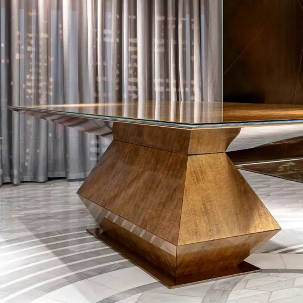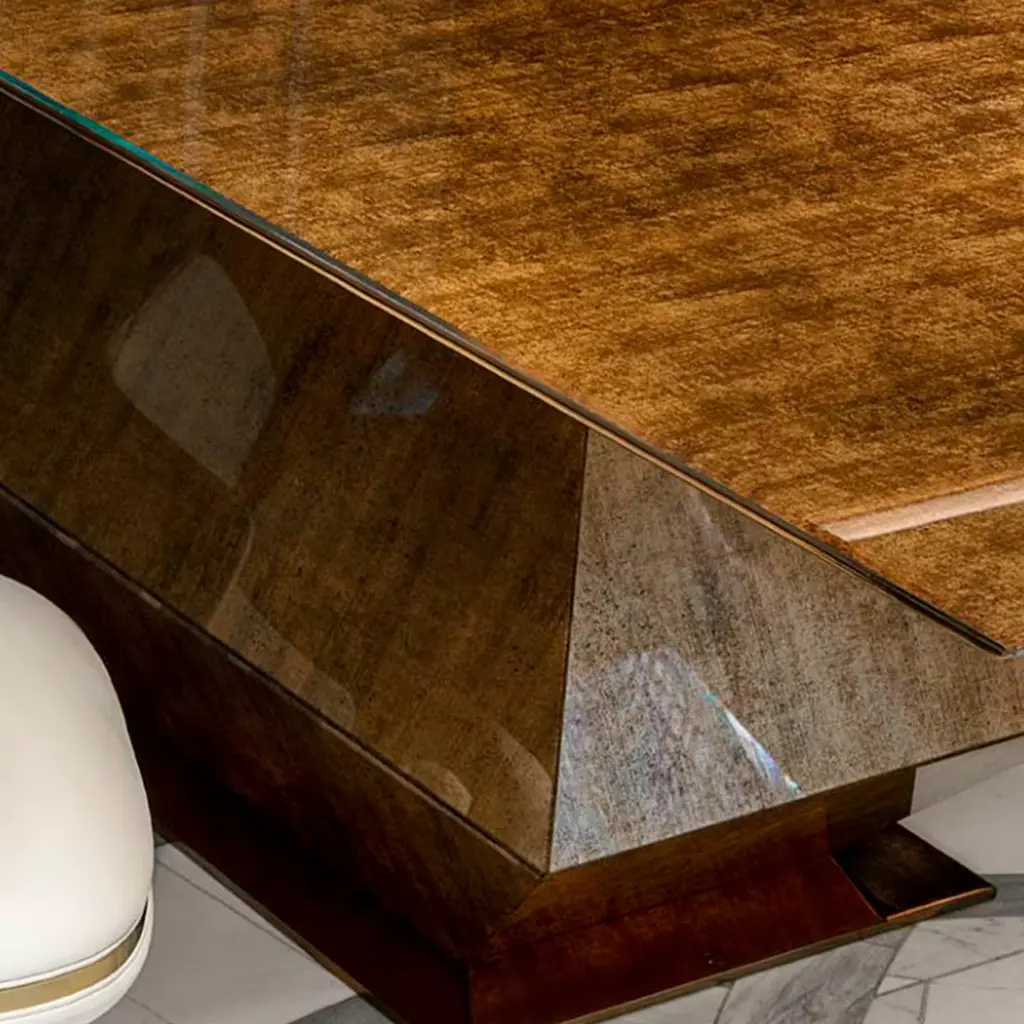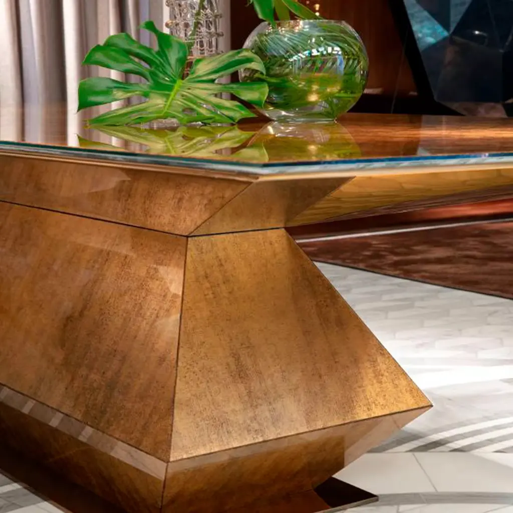 A table made of Vetrite that looks like a sculpture. An original design object that combines the most modern processing techniques with exclusive materials and Italian craftsmanship.