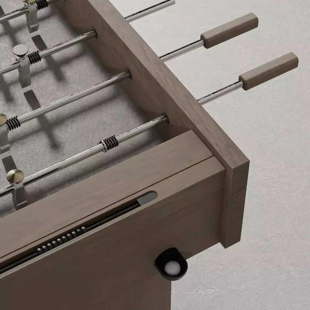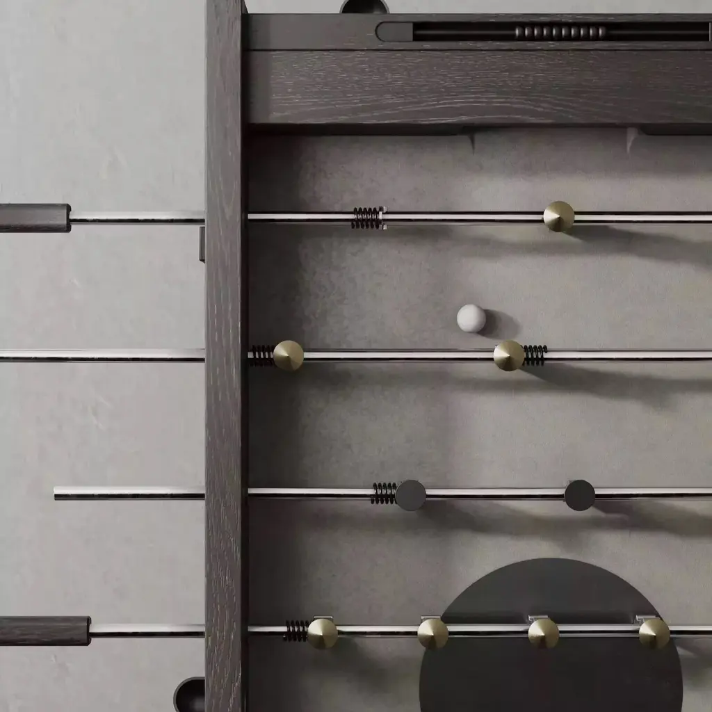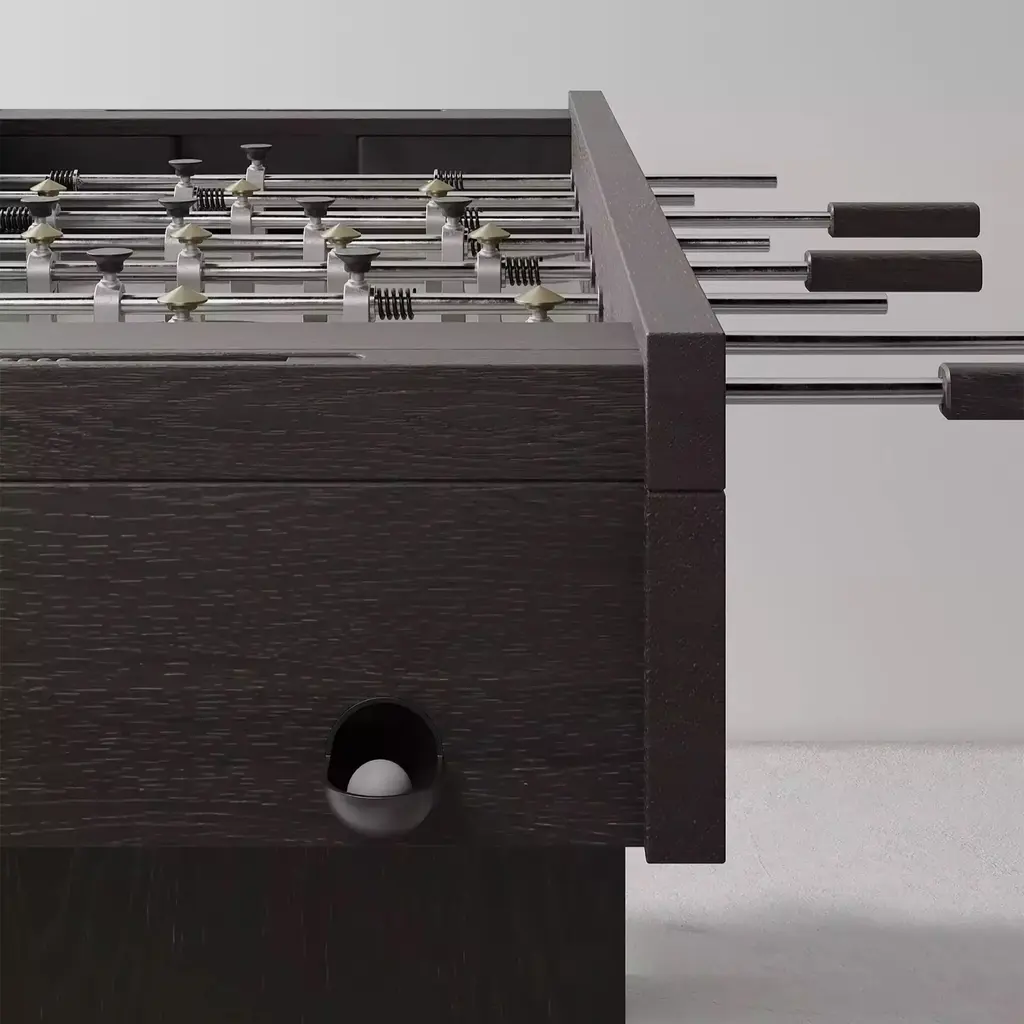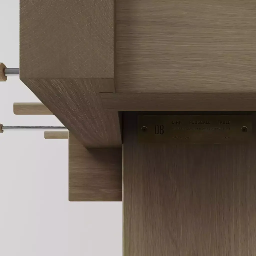 The Dinh Foosball Table from District Eight transforms a classic game into a sculptural work of art, rich with architectural and cultural inspiration. Its solid oak frame emulates the lines of Saigonese modernist buildings, while the steel players wear headwear inspired by traditional Vietnamese hats. A smooth concrete playing surface ensures quality gameplay on this masterfully crafted piece. A true showpiece, it’s an invitation to play, wrapped in a stunning tribute to heritage and design. Highlights: