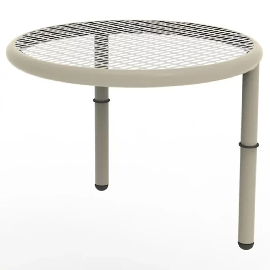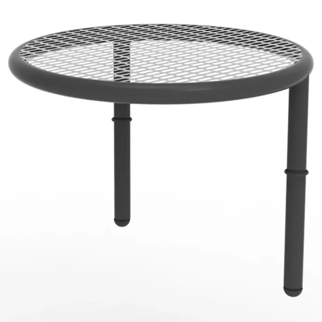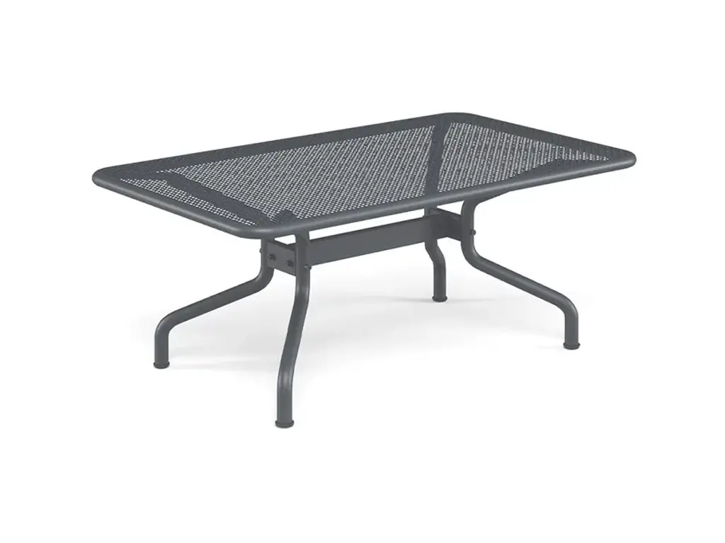 The Disco Outdoor Stacking Low Table from emu presents a stately example of storage and display. An Aldo Ciabatti creation showcasing his focus on the essential essence, form, and harmony of a piece, its steel form rests on three slender rod-shaped legs, suspending a horizontal circular tabletop above. The table’s surface is accented by a woven metal pattern, permitting rain to fall through while allowing the storage of small accessories, with a set of six tables able to be stacked atop each other for storage.