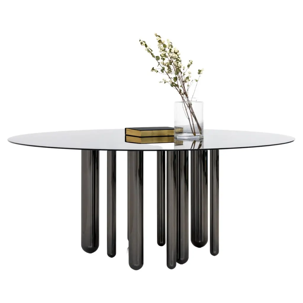 Discoteca, Table With Transparent Fumé Glass Top 180