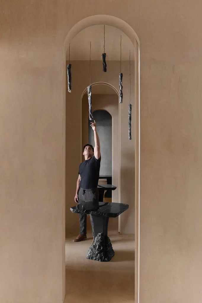 Divergente Textured Black Marble Table With Split Top By Andres Monnier