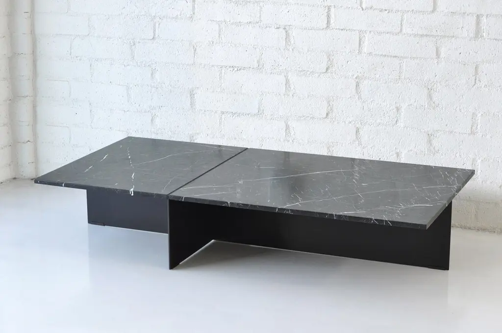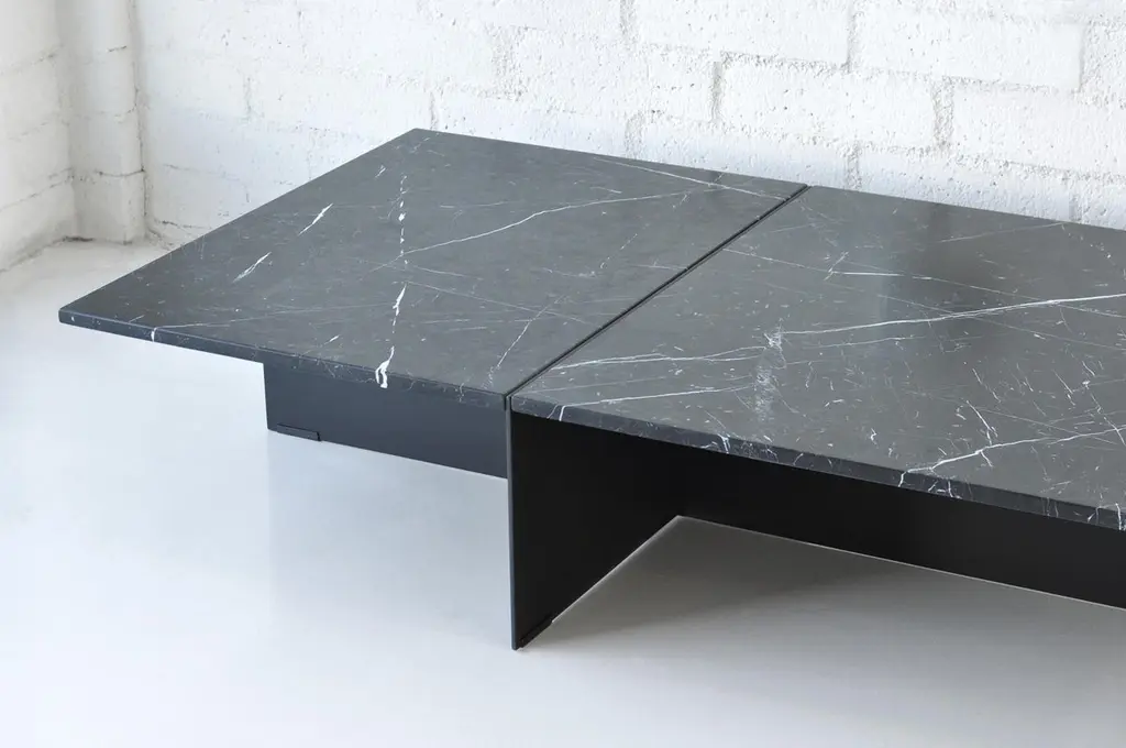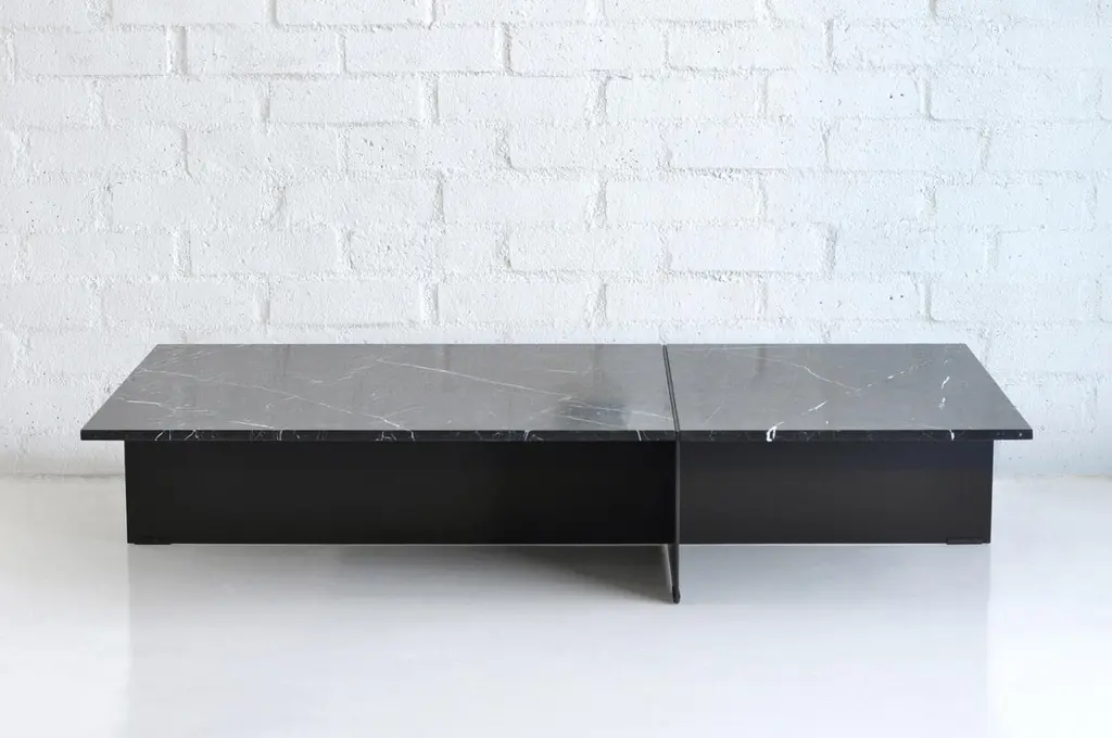 Division Rectangular Coffee Table by Phase DesignDimensions: D 81,3 x W 162,6 x H 30,5 cm. Materials: Powder-coated solid steel and negro marquina marble.Solid steel sheet available in a flat black or white powder coat finish. Powder coat finishes are available in custom colors. Travertine, white carrara, or negro marquina marble top. Marble available with polished or honed finish. Prices may vary. Please contact us.Collection of architecturally inspired side and coffee tables, fabricated out powder coated metal bases with travertine or marble tops. The tops are divided by a protruding metal strip, thus the name Division.Autodidact award-winning designer Reza Feiz has always been drawn to the strength in simplicity. Lured to Southern California by its inventive, creative spirit, he quickly discovered his true calling among the vast community of creators and artisans whose skills and ingenuity expertly transform imagination into reality.Inspired by Los Angeles’ iconic landscape and the compelling beauty of the places and spaces he encountered, he envisioned furniture, lighting and tabletop accessories, fabricating them from contemporary materials with the help of a tightly knit coterie of craftspeople.The resulting restrained yet revolutionary pieces have garnered enthusiasm from an international audience.He’s been lauded as “An American designer who influences world design”, a “Style Pioneer” and “One of a group of select young designers who represent the leading edge of discovery in design.” Architectural Digest’s Mayer Rus noted that his “wide-ranging collections make a strong case for the enduring appeal of restrained modern design.” Surface Magazine raved that he “imbues his work with a 21st-century edge. His astute sense of restraint keeps the designs relevant in a constantly evolving industry, without needing to subscribe to trends.”“Reza Feiz imbues his work with a 21st-century edge. His astute sense of restraint keeps the designs relevant in a constantly evolving industry, without needing to subscribe to trends.”
