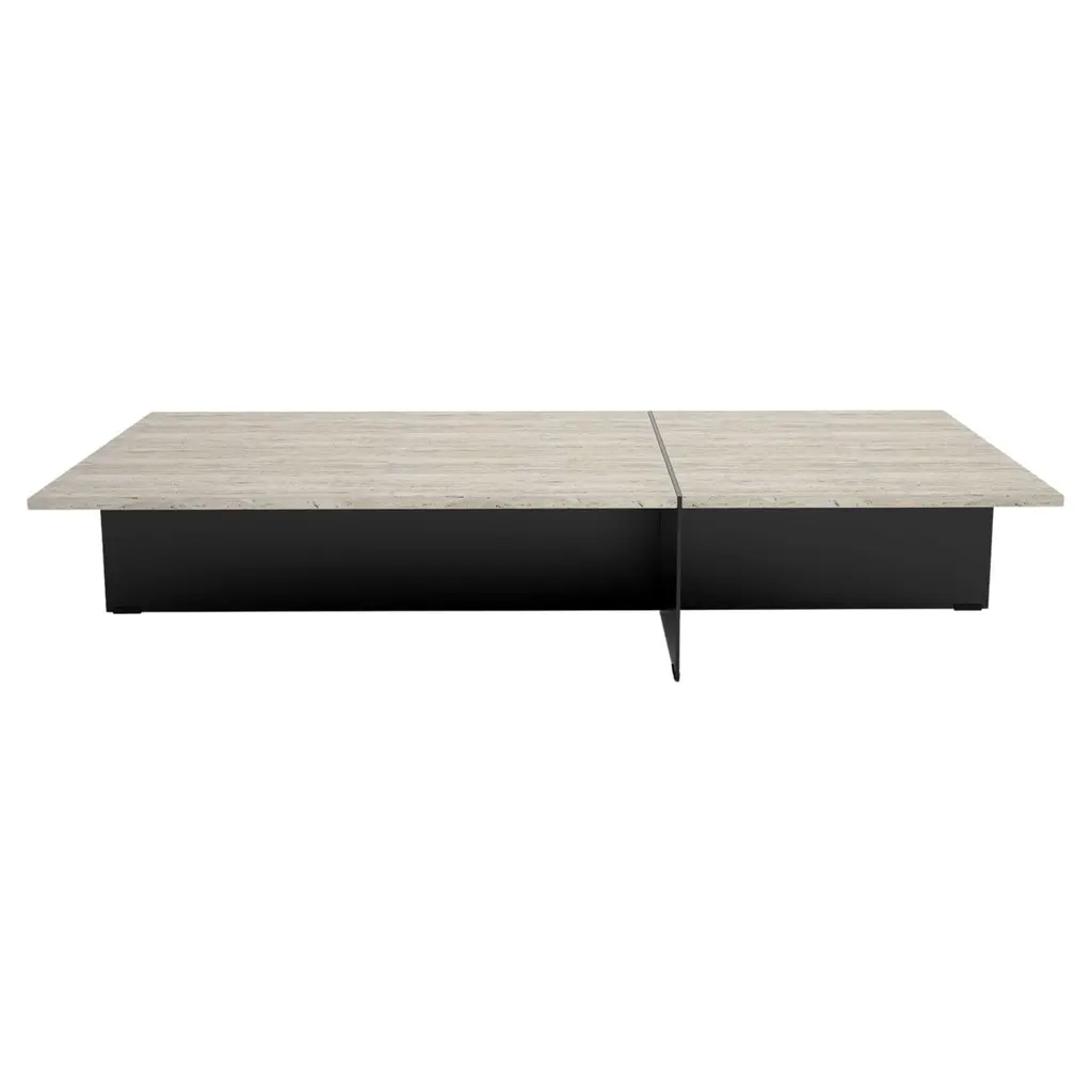 Division Rectangular Coffee Table by Phase DesignDimensions: D 81,3 x W 162,6 x H 30,5 cm. Materials: Powder-coated solid steel and travertine.Solid steel sheet available in a flat black or white powder coat finish. Powder coat finishes are available in custom colors. Travertine, white carrara, or negro marquina marble top. Marble available with polished or honed finish. Prices may vary. Please contact us.Collection of architecturally inspired side and coffee tables, fabricated out powder coated metal bases with travertine or marble tops. The tops are divided by a protruding metal strip, thus the name Division.Autodidact award-winning designer Reza Feiz has always been drawn to the strength in simplicity. Lured to Southern California by its inventive, creative spirit, he quickly discovered his true calling among the vast community of creators and artisans whose skills and ingenuity expertly transform imagination into reality.Inspired by Los Angeles’ iconic landscape and the compelling beauty of the places and spaces he encountered, he envisioned furniture, lighting and tabletop accessories, fabricating them from contemporary materials with the help of a tightly knit coterie of craftspeople.The resulting restrained yet revolutionary pieces have garnered enthusiasm from an international audience.He’s been lauded as “An American designer who influences world design”, a “Style Pioneer” and “One of a group of select young designers who represent the leading edge of discovery in design.” Architectural Digest’s Mayer Rus noted that his “wide-ranging collections make a strong case for the enduring appeal of restrained modern design.” Surface Magazine raved that he “imbues his work with a 21st-century edge. His astute sense of restraint keeps the designs relevant in a constantly evolving industry, without needing to subscribe to trends.”“Reza Feiz imbues his work with a 21st-century edge. His astute sense of restraint keeps the designs relevant in a constantly evolving industry, without needing to subscribe to trends.”
