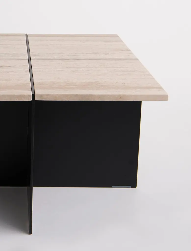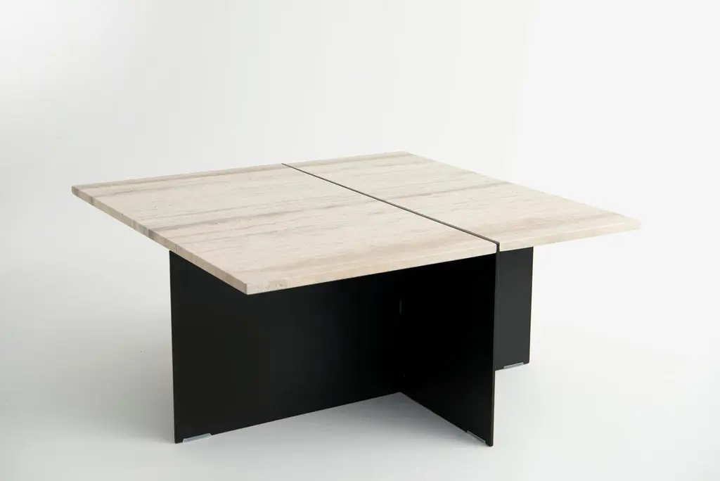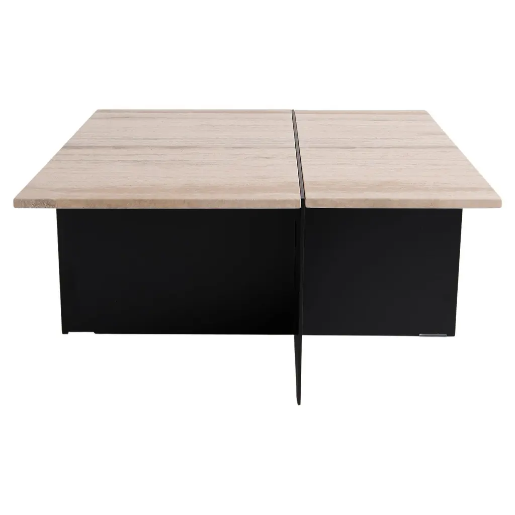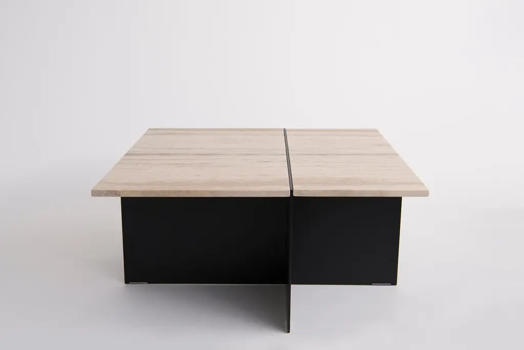 Division Square Coffee Table by Phase DesignDimensions: D 81,3 x W 81,3 x H 38,1 cm. Materials: Powder-coated solid steel and travertine.Solid steel sheet available in a flat black or white powder coat finish. Powder coat finishes are available in custom colors. Travertine, white carrara, or negro marquina marble top. Marble available with polished or honed finish. Prices may vary. Please contact us.Collection of architecturally inspired side and coffee tables, fabricated out powder coated metal bases with travertine or marble tops. The tops are divided by a protruding metal strip, thus the name Division.Autodidact award-winning designer Reza Feiz has always been drawn to the strength in simplicity. Lured to Southern California by its inventive, creative spirit, he quickly discovered his true calling among the vast community of creators and artisans whose skills and ingenuity expertly transform imagination into reality.Inspired by Los Angeles’ iconic landscape and the compelling beauty of the places and spaces he encountered, he envisioned furniture, lighting and tabletop accessories, fabricating them from contemporary materials with the help of a tightly knit coterie of craftspeople.The resulting restrained yet revolutionary pieces have garnered enthusiasm from an international audience.He’s been lauded as “An American designer who influences world design”, a “Style Pioneer” and “One of a group of select young designers who represent the leading edge of discovery in design.” Architectural Digest’s Mayer Rus noted that his “wide-ranging collections make a strong case for the enduring appeal of restrained modern design.” Surface Magazine raved that he “imbues his work with a 21st-century edge. His astute sense of restraint keeps the designs relevant in a constantly evolving industry, without needing to subscribe to trends.”“Reza Feiz imbues his work with a 21st-century edge. His astute sense of restraint keeps the designs relevant in a constantly evolving industry, without needing to subscribe to trends.”