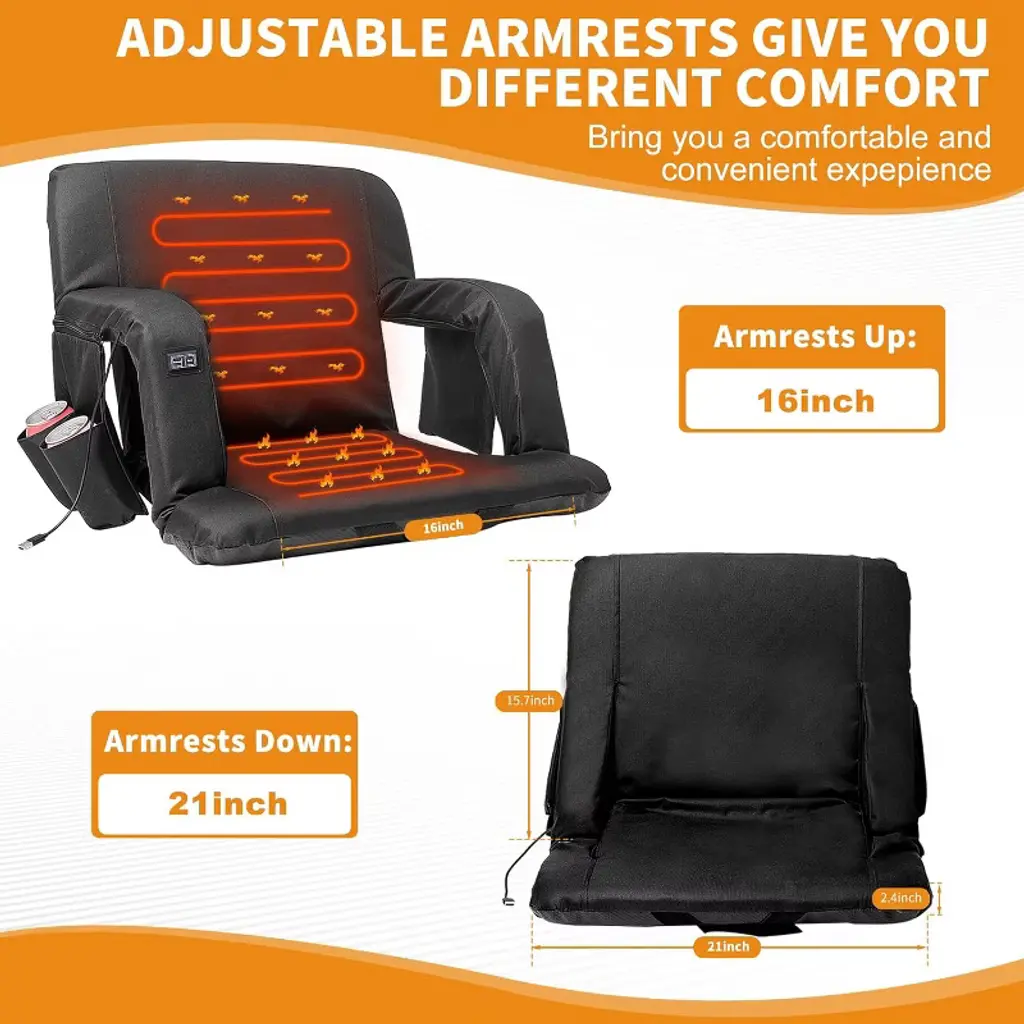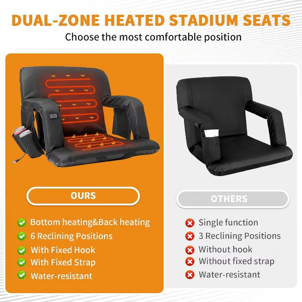 Docred Heated Stadium Seat Bleacher Seat With Back & Arm Support, Portable 6 Reclinng Positions Stadium Seating For Bleachers