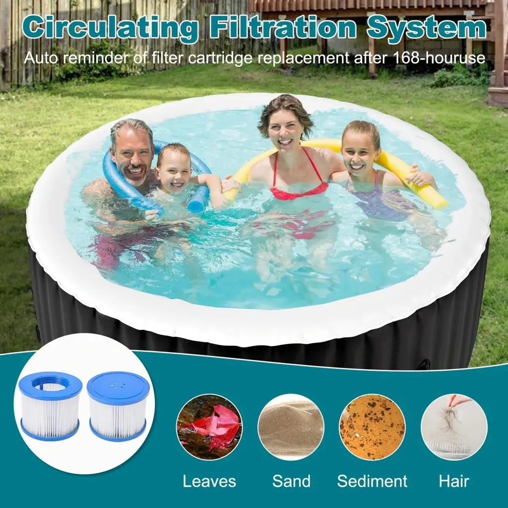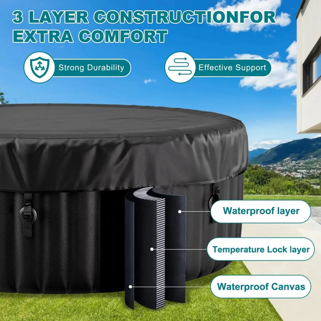 DoCred inflatable hot tub provides all the physical and mental health benefits of a traditional hot tub for you and your family and friends. The tub's built in drain quickly empties your water directly out of its valve. Everyone deserves a cozy spa to recover from life's traumas, great and small.Feature: