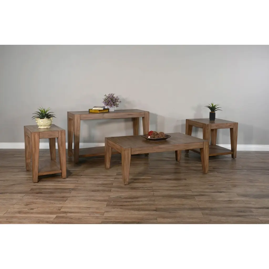 The Doe Valley occasional set is constructed with distressed mahogany solids and veneers. This occasional table set is sleek, transitional-modern, and elegant with a bold construction and enunciated design - Product Details provided by Manufacturer, Slumberland not responsible for errors in information.