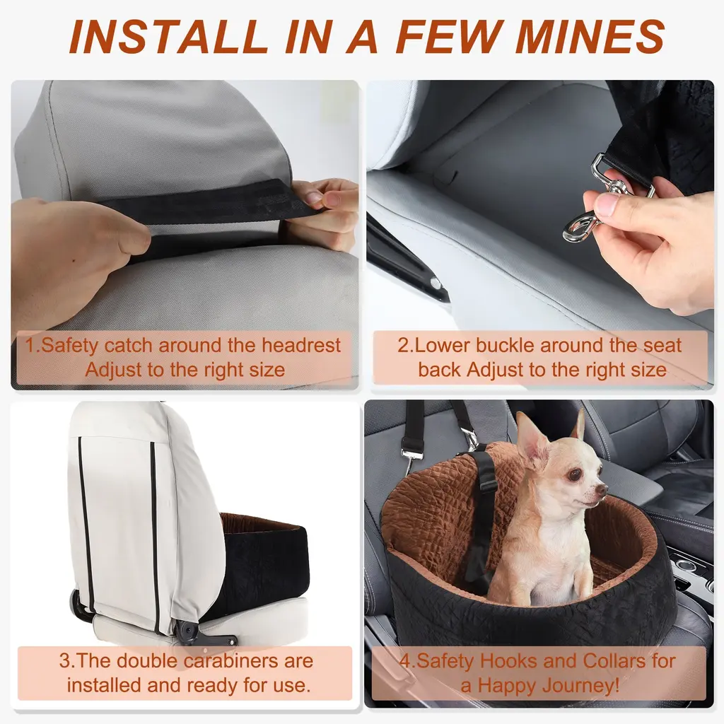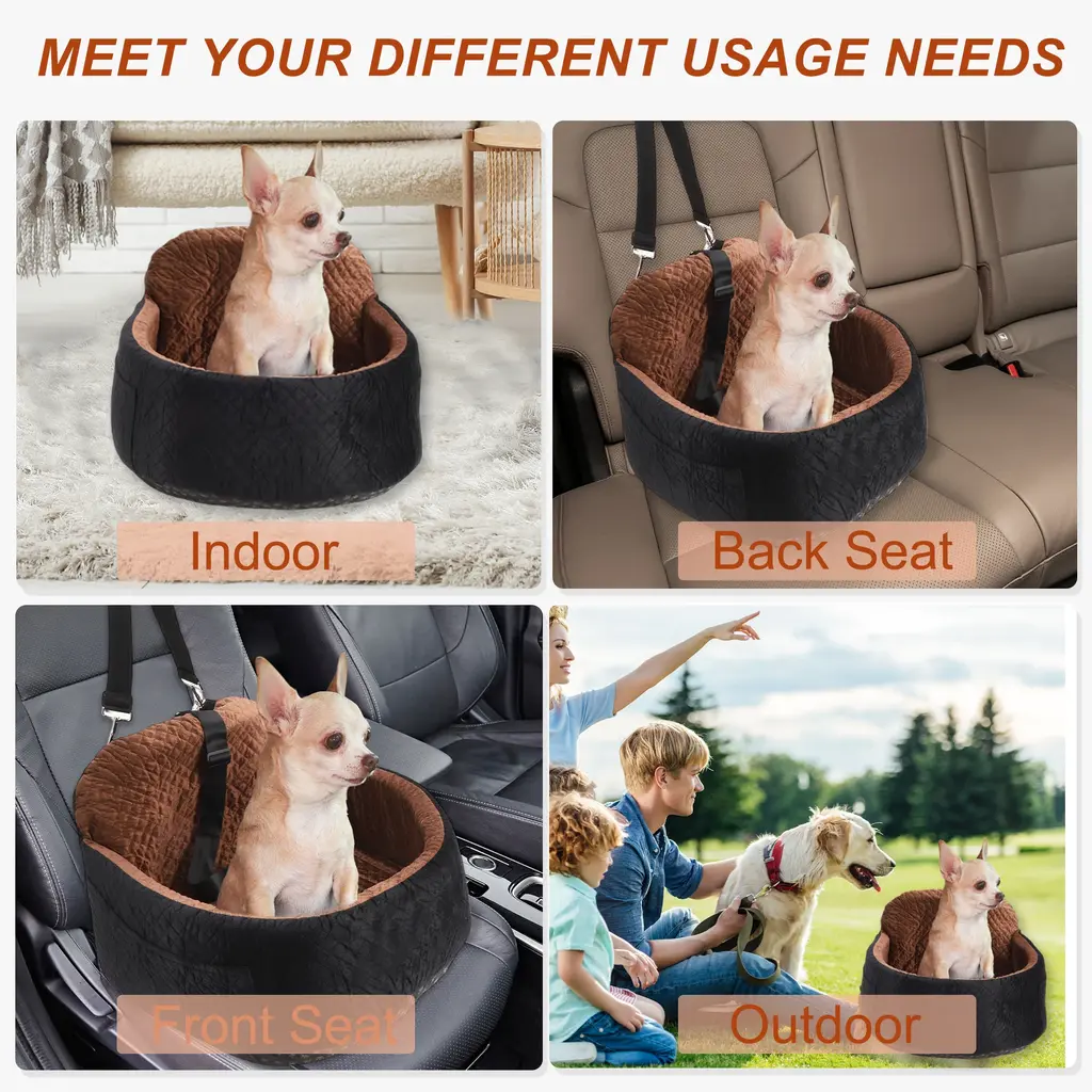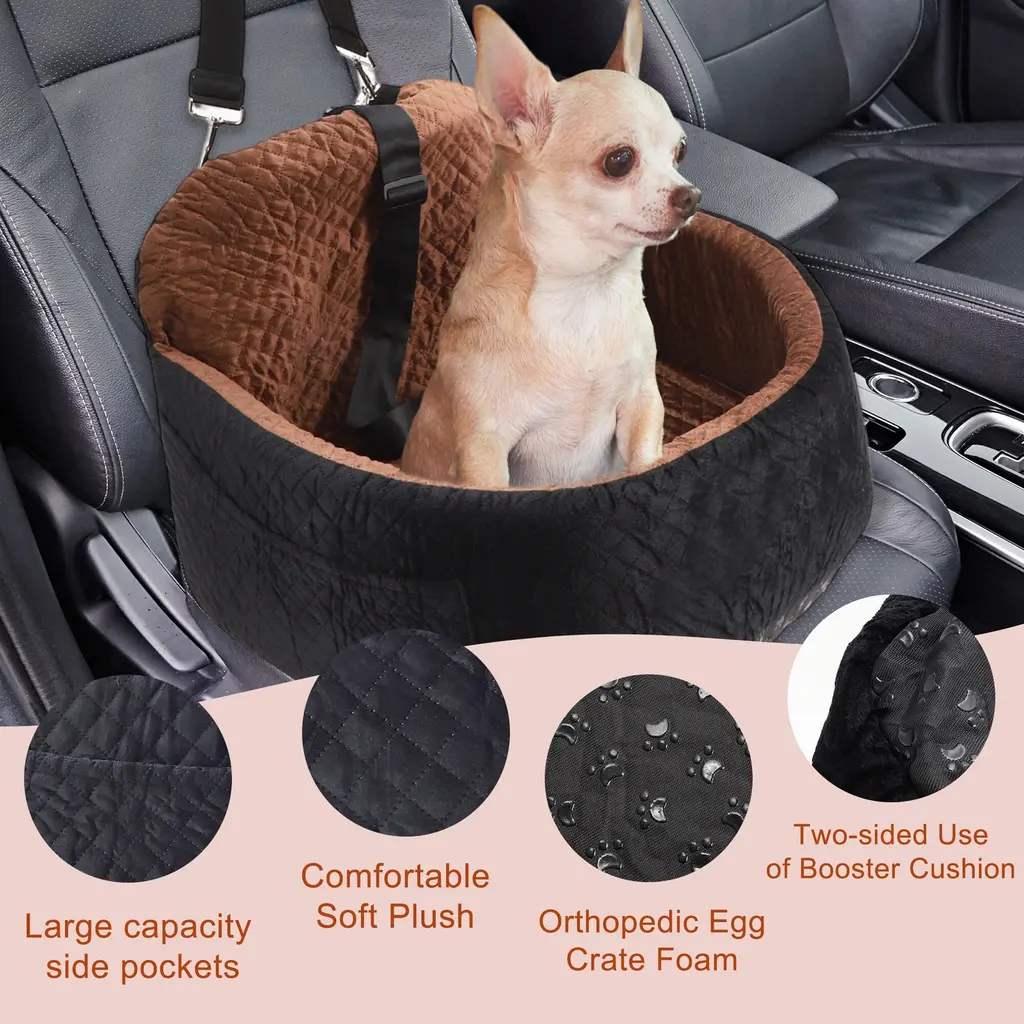 Dog Car Seat For Small Medium Dog Removable Safe And Comfortable - Black, Brown