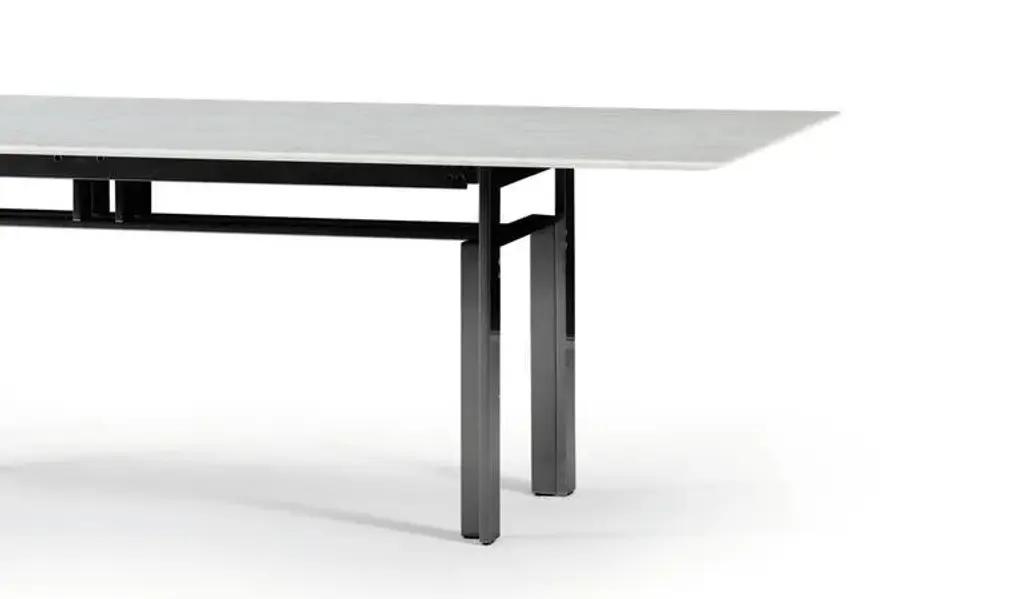 Doge is a rectangular table with metal base and or marble top.A veritable masterpiece of the Italian design tradition, this sculpture-like table became, in the late 1960s, the emblem of the “Ultrarazionale” movement which, shrugging off the restraints imposed by the Rationalists, aimed to re-embrace traditional aesthetic values. Part of Cassina’s Simon Collection, the Doge table has been revisited with new textures and new materials. The architectural aluminium or satin-finish steel base, set off by the flat wide profiles, is the essential part of the table, while the elegantly refined mechanism linking top to base can be seen from above, through the glass of the table top. The new-look Doge table is available in five sizes, all taking their cue from Carlo Scarpa’s original design, with the table top being available in glass or marble.StructureBrushed metal frame lacquered over with protective transparent gloss.Anodized aluminium frame (colours as per catalogue).Visible burnished screws.Decorative brass spacer inserts.TopIn white Carrara marble or black Marquiña marble.FinishesLow gloss polyester finishing.FeetIn black rubber.