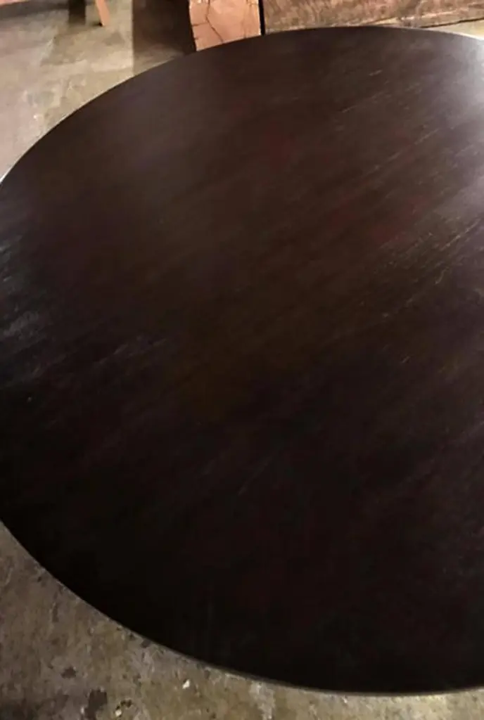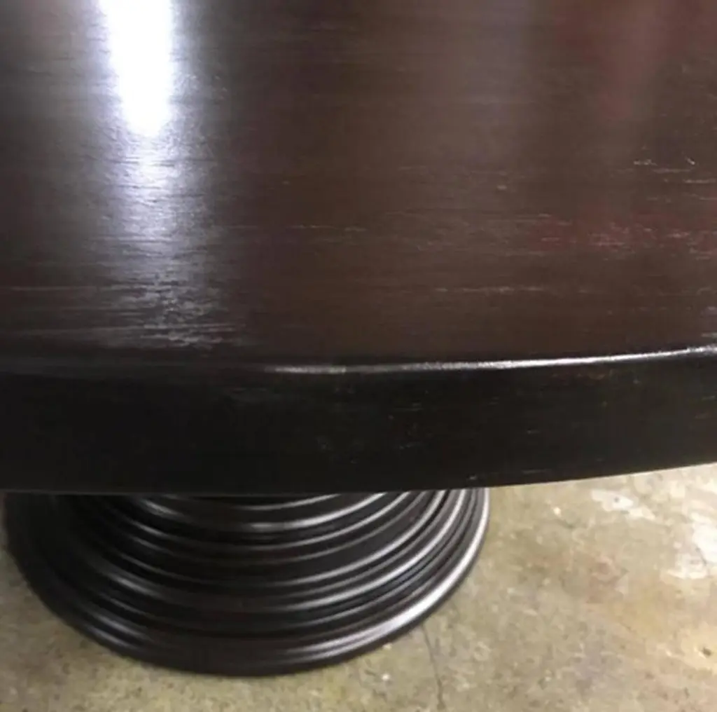 Custom beehive pedestal table. As shown, in 60 inch diameter in walnut with an ebony finish and light distress. This particular piece is available off the floor. Can be made in any size and finish in walnut, oak or mahogany. Bench made in Los Angeles by Dos Gallos Studio. Regular lead time is 14-16 weeks.PRICES ARE SUBJECT TO CHANGE. PLEASE INQUIRE BEFORE PLACING AN ORDER. CUSTOM ORDERS ARE NON RETURNABLE. FINAL SALE
