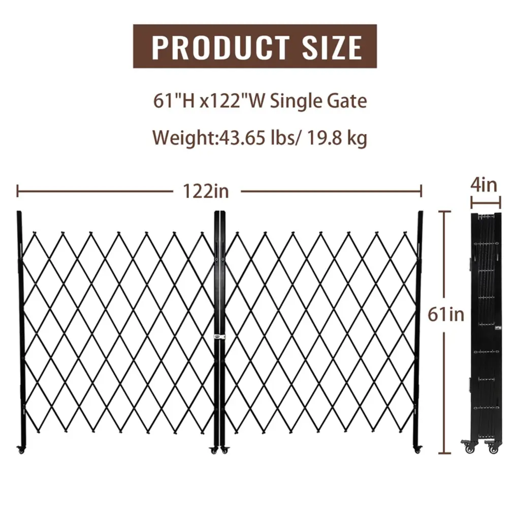 Double Folding Security Door, 61" H X 122" W Portable Flexible Expandable Fence Gate, Steel Accordion Security Gate