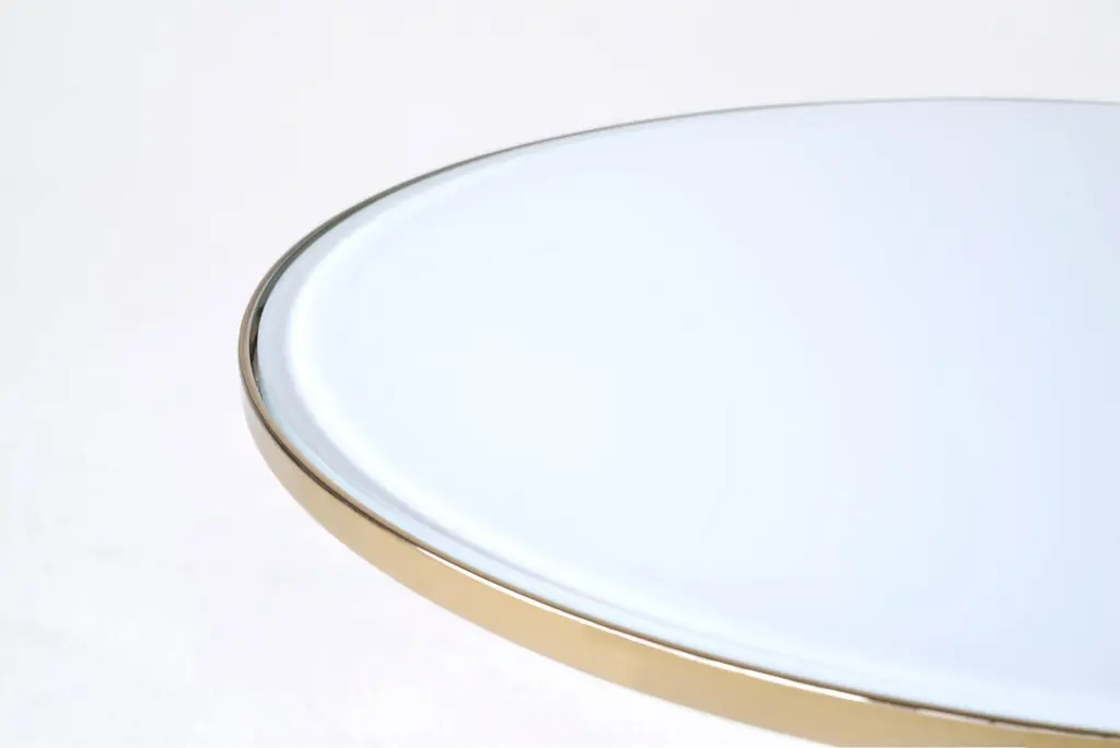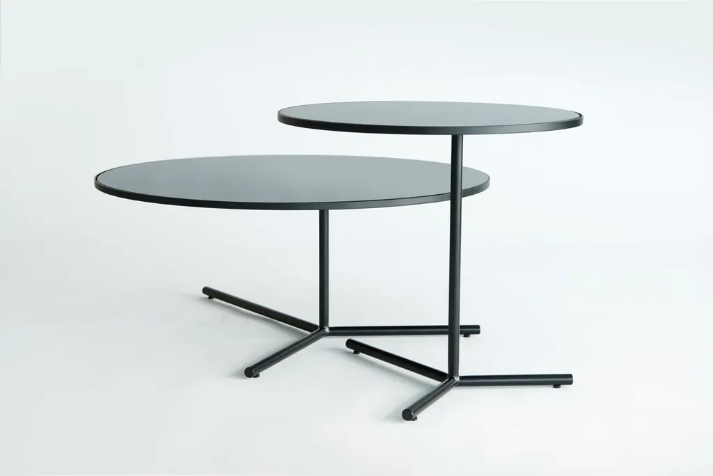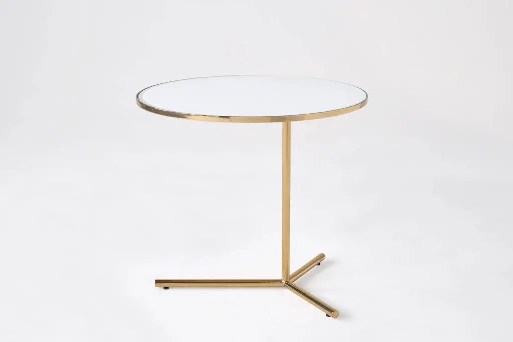 The Downtown Tables are composed of three separate tables, intended to be used individually or in conjunctionwith one another. An offset leg allows for nesting these tables in various forms and compositions. The table’s spandrel glass top is housed in a jewel like surround, making for a sleek and polished presentation.Prices exclude packing.