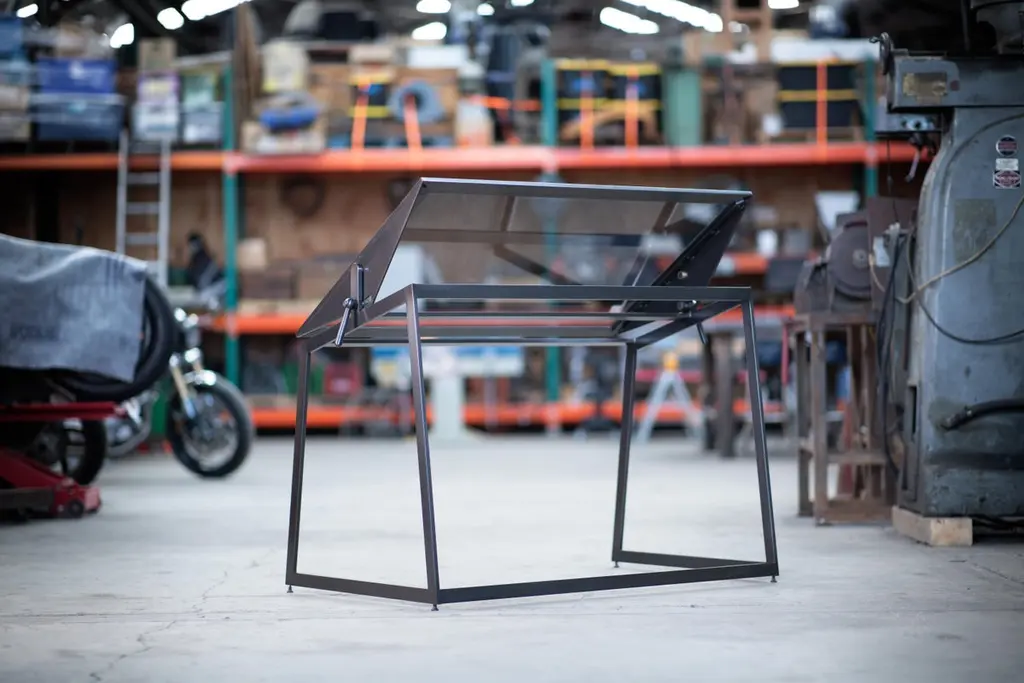 Drafting Table And Utility Cart, Blackened Steel And Gray Glass By Force/collide