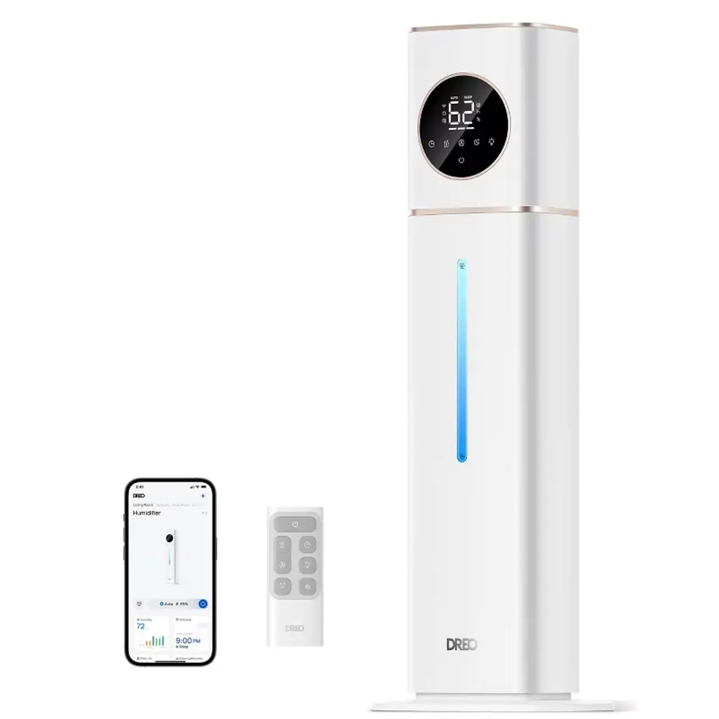 The DREO space heater delivers fast, powerful warmth with 1500W PTC ceramic heating and dual DC motors that fill your room with comfort in seconds. Operating at just 34dB, it's quieter than a library, making it perfect for bedrooms, nurseries, and workspaces. With a wide 41–95°F thermostat range in 1°F increments and ECO mode that auto-adjusts heat output, it ensures warmth without wasting energy. A 70° oscillation, 12H timer, and remote make personalized comfort effortless. Backed by an advanced 8-layer safety system, this heater is designed for peace of mind, all-day use, and year-round coziness.