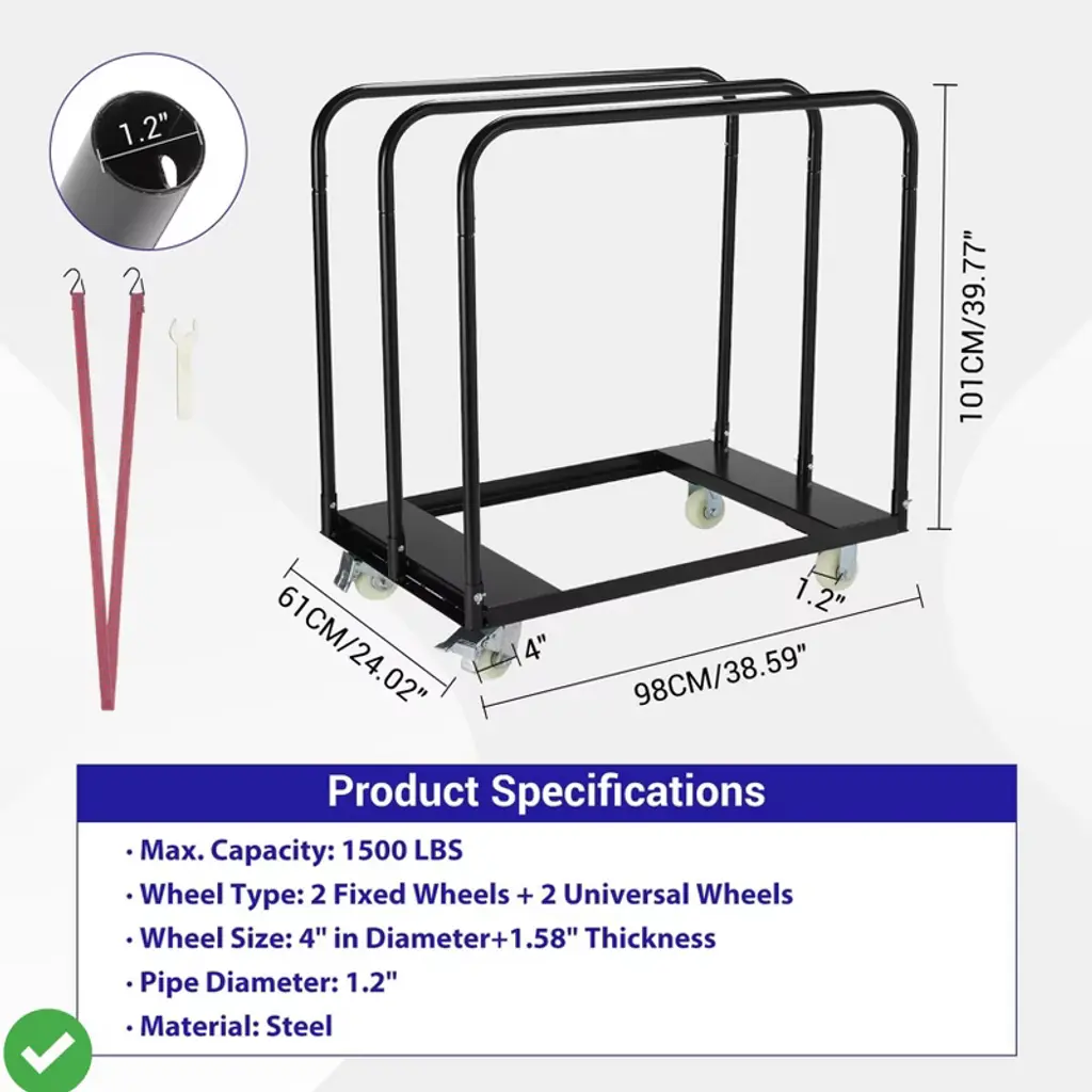 Drywall Cart Steel Panel Truck Heavy Duty Flatbed Dolly Carts With Wheels Table Trolley With 1500 Lbs Capacity