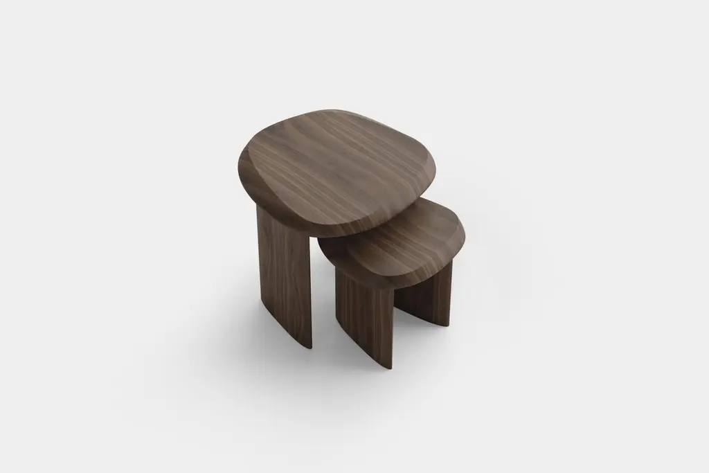 Duna Nest Table, Side Table, Bedside Table in Walnut Wood by Joel EscalonaDuna Collection is a set of wood tables and surfaces inspired by the vast sand dune regions of the world. These formations, full of sinuous fine lines created by the wind, not only show the beauty of a landscape, but also represent the natural passage of time and the constant transformation of our surroundings. Two nest tables that fit together in order to optimize space and bring a warm sensation into the room. It can also be used as a night stand or an auxiliary table. This piece is delicately crafted to resemble a serene landscape through its carefully polished table top surface that resembles the effect of the wind and its captivating fluid smooth wood base.Designed by Joel Escalona, this is a set of two tables made of solid wood with a water-based finish available in Poplar wood and Walnut.——NONO is a Mexican design brand with more than 10 years of experience dedicated to the production of interior furnishings, editions, and custom-made projects. At NONO, we create pieces of extraordinary beauty, accommodating the particular needs and tastes of each client with exclusive high-quality designs.—Joel Escalona is a Mexican designer, difficult to define with a single word. His constant search for clarity, integrity and harmony led to his development as a designer with an obvious inclination towards visual arts, such as painting and sculpture. Joel’s work is characterized by thorough and elegant processes, sometimes creative, other times productive and on occasion, a bit introspective. In his work, it is possible to find glimpses of his charismatic and ironic personality, resorting to elements such as lyric, humor and poetry as attributes that are in constant connection throughout his body of work.————Some details to consider when placing an order with us:• Catalog images are digitally generated. Actual products may slightly vary in texture, grain, and final finish due to natural material differences. Despite these variations, our expertise ensures each piece maintains high quality and matches the intended design.• All of our products are made to order, and the lead time for standard products is estimated to be 9 to 12 weeks, plus shipping time. However, special pieces or sculptures may require a longer lead time.• We offer customization in dimensions and finish for all of our furniture pieces, which may result in additional charges.• We only facilitate freight services by a third party. The client is solely responsible for any associated import/export taxes, as well as any necessary customs paperwork.• We are not responsible for any damages that may occur during shipping or for any customs-related delays.