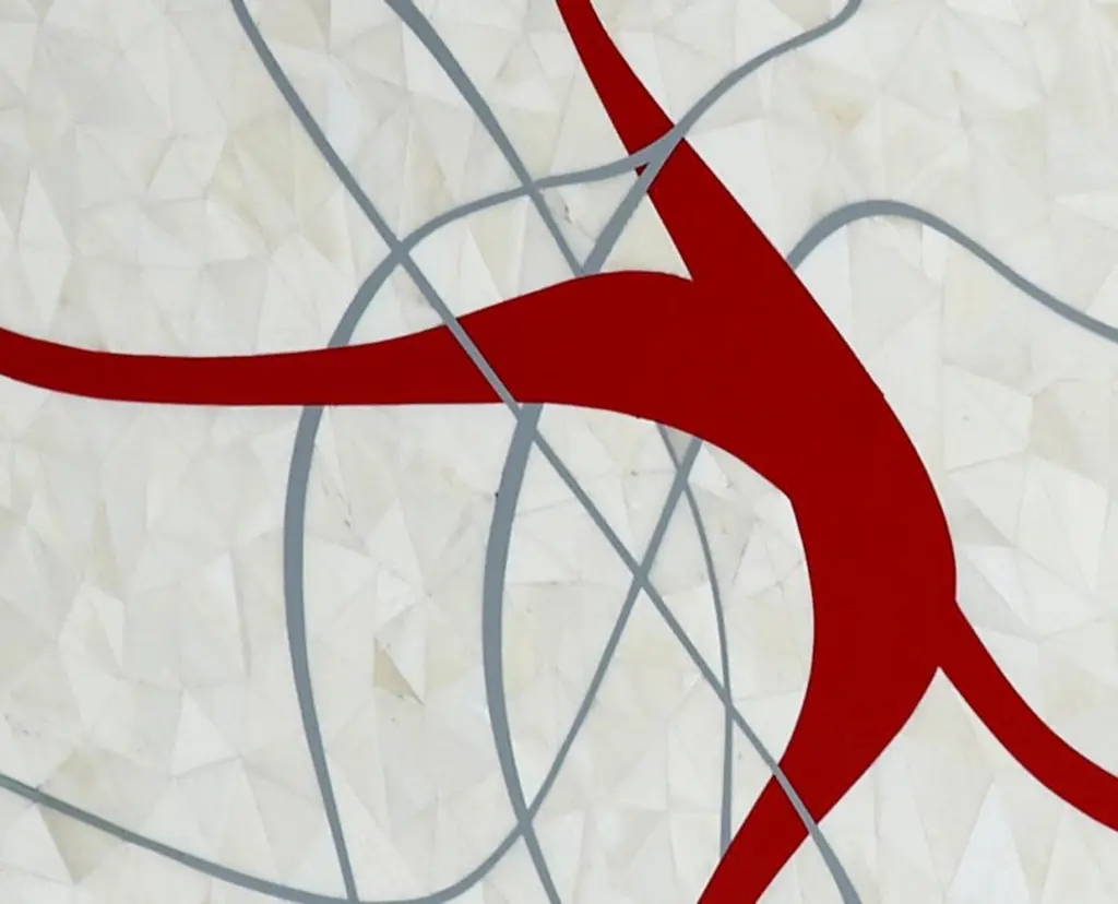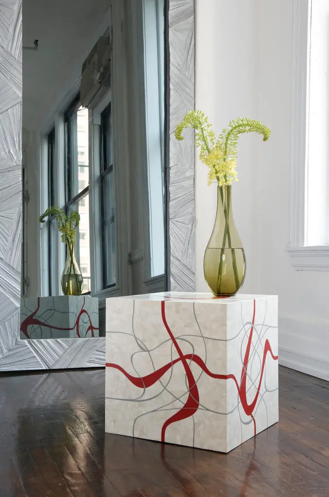 Dune Modern Cube Shaped Table In Bone With Grey And Red Resin Inlay