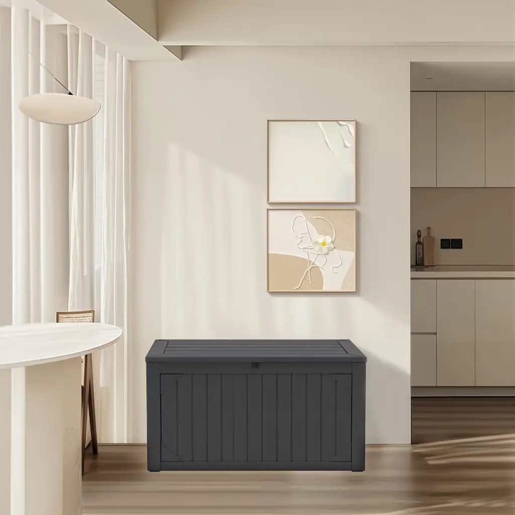 Durable material, suitable for both indoor and outdoor use. Made of sturdy and durable materials, it features excellent waterproof, sun-proof and anti-corrosion properties. Whether placed in an indoor living room or an outdoor courtyard or terrace, it can be used stably for a long time, unaffected by wind, rain and intense sunlight.With a large storage capacity and outstanding organizing ability, it features a large space of 48 "(122cm) ¡Á21.5" (54.5cm) ¡Á24.5 "(62cm), which can easily store outdoor products, gardening tools, household sundries, etc., making the space bid farewell to clutter and achieving one-stop storage.