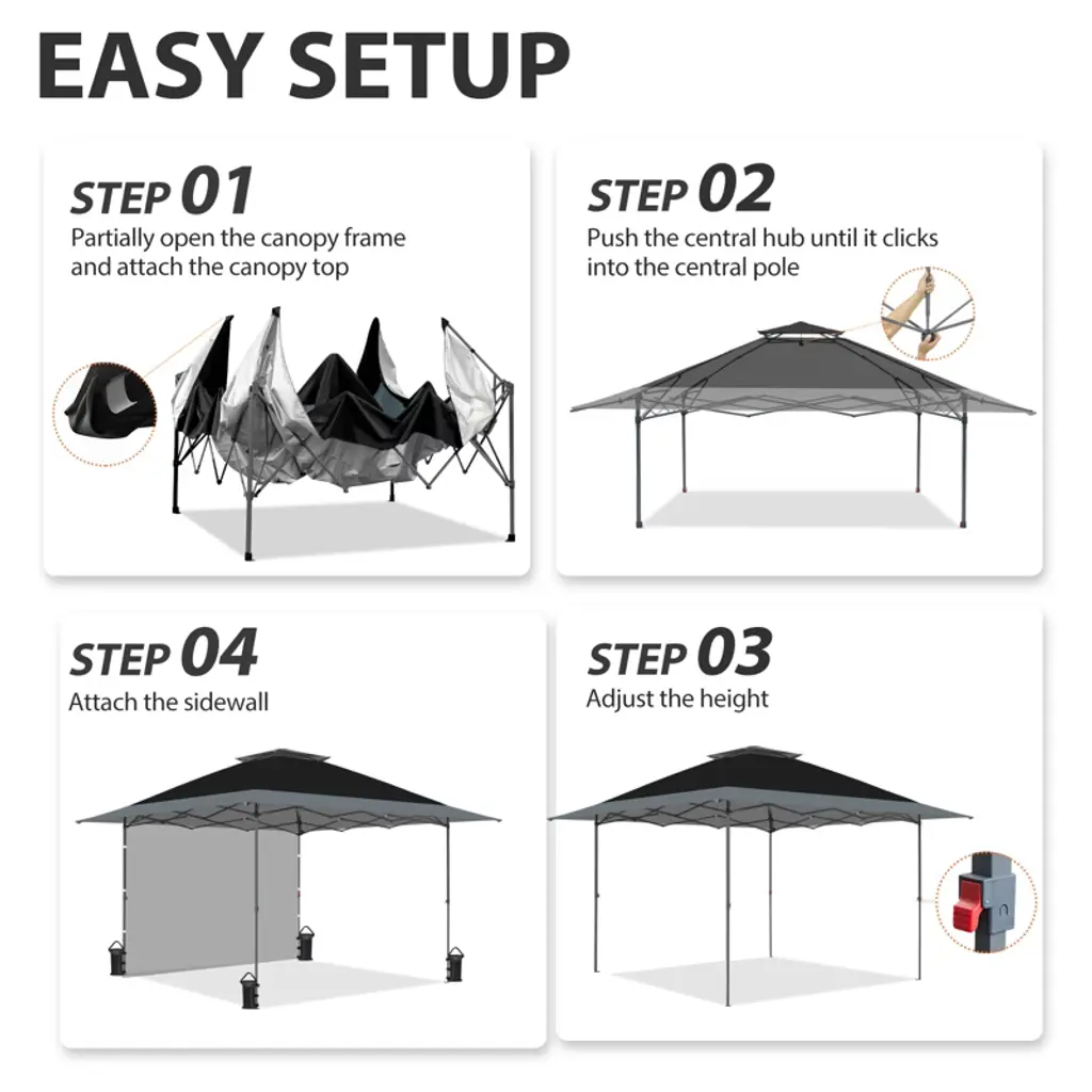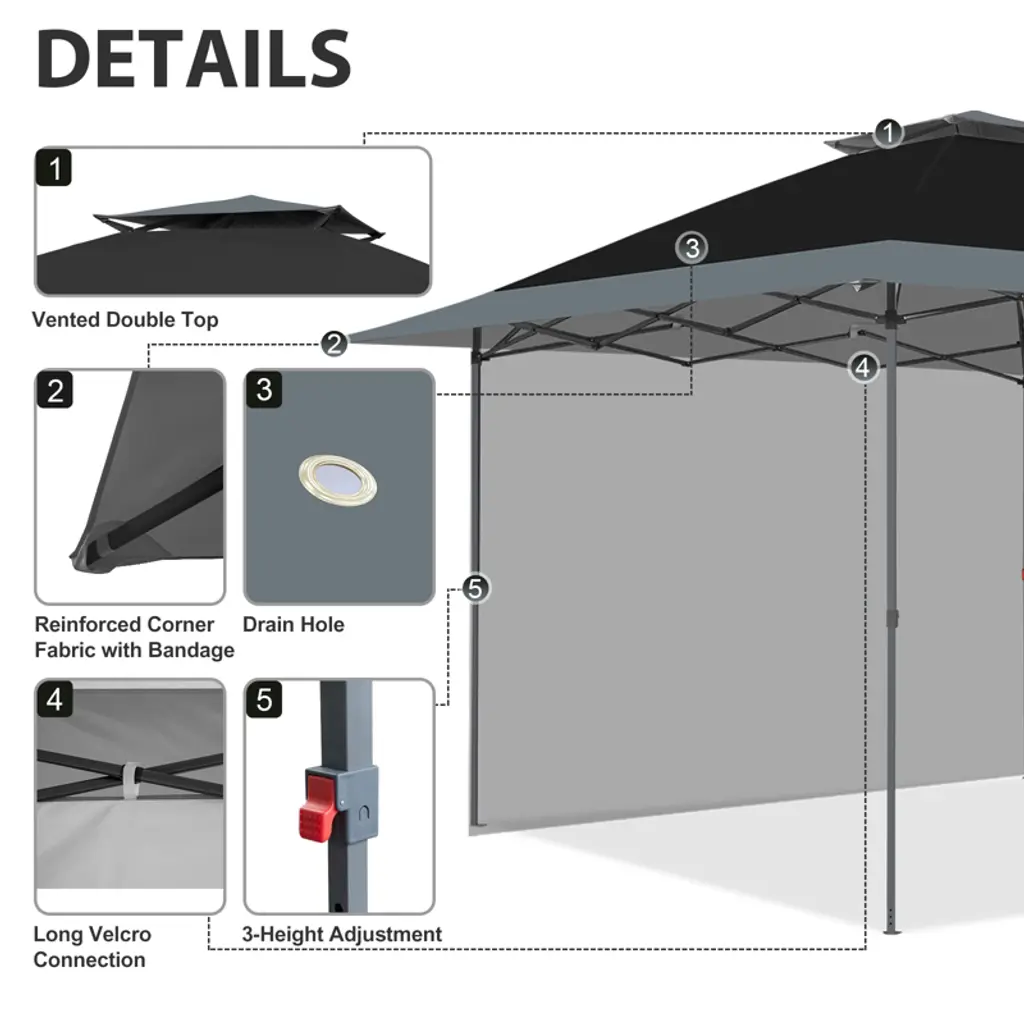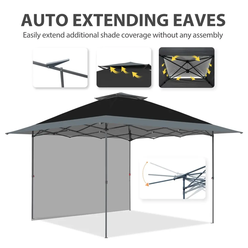 Eagle Peak 13'x13' Pop Up Canopy Tent W/ One Wall,portable Sun Shelter For Camping, Black/gray