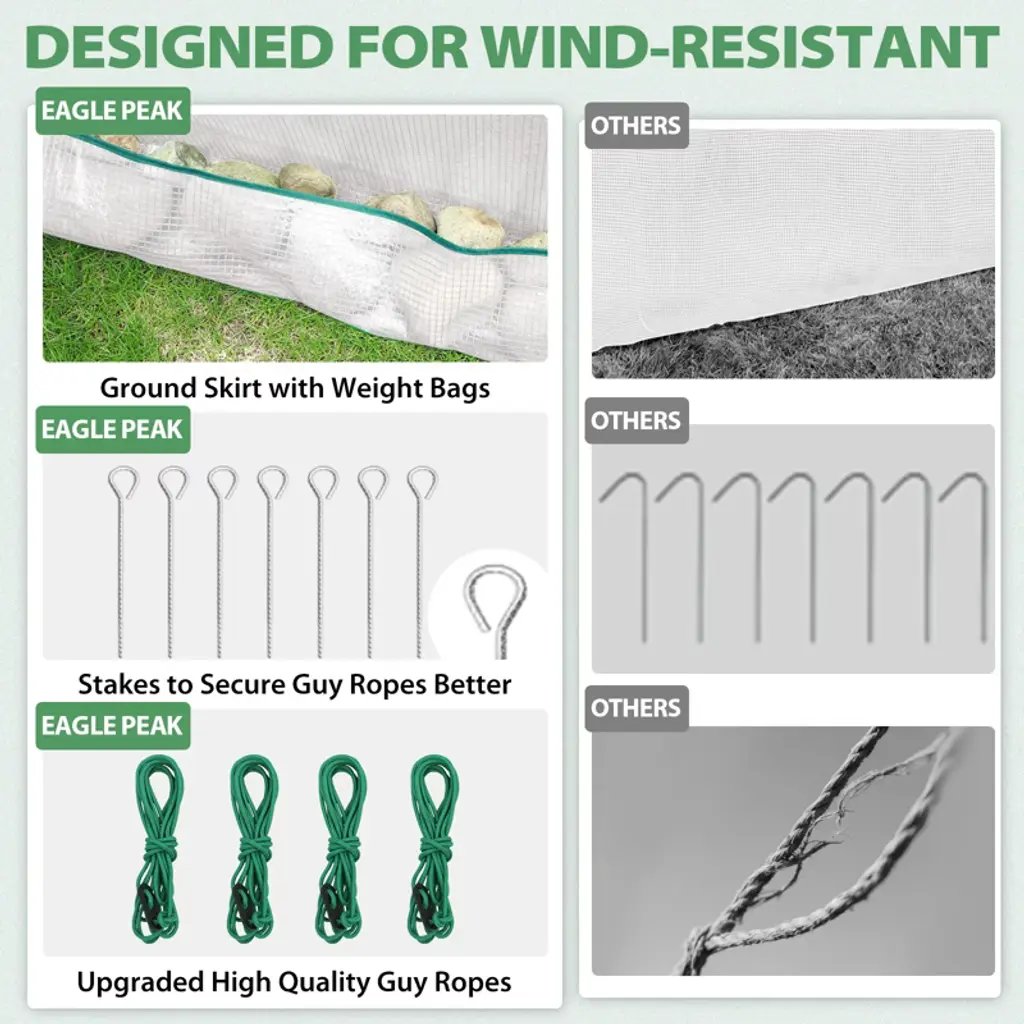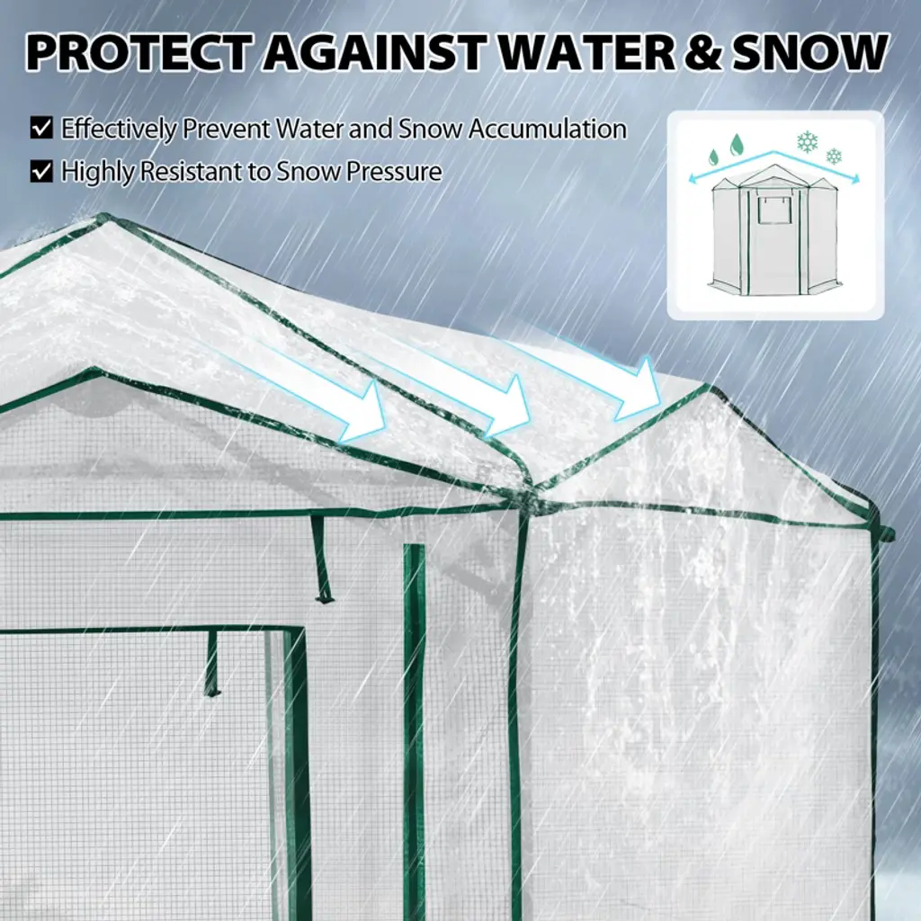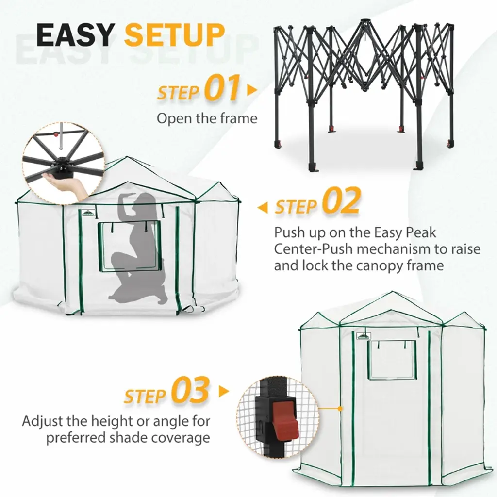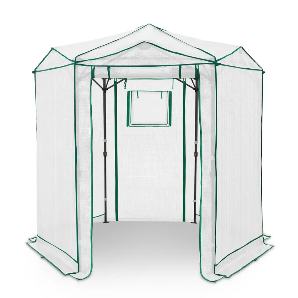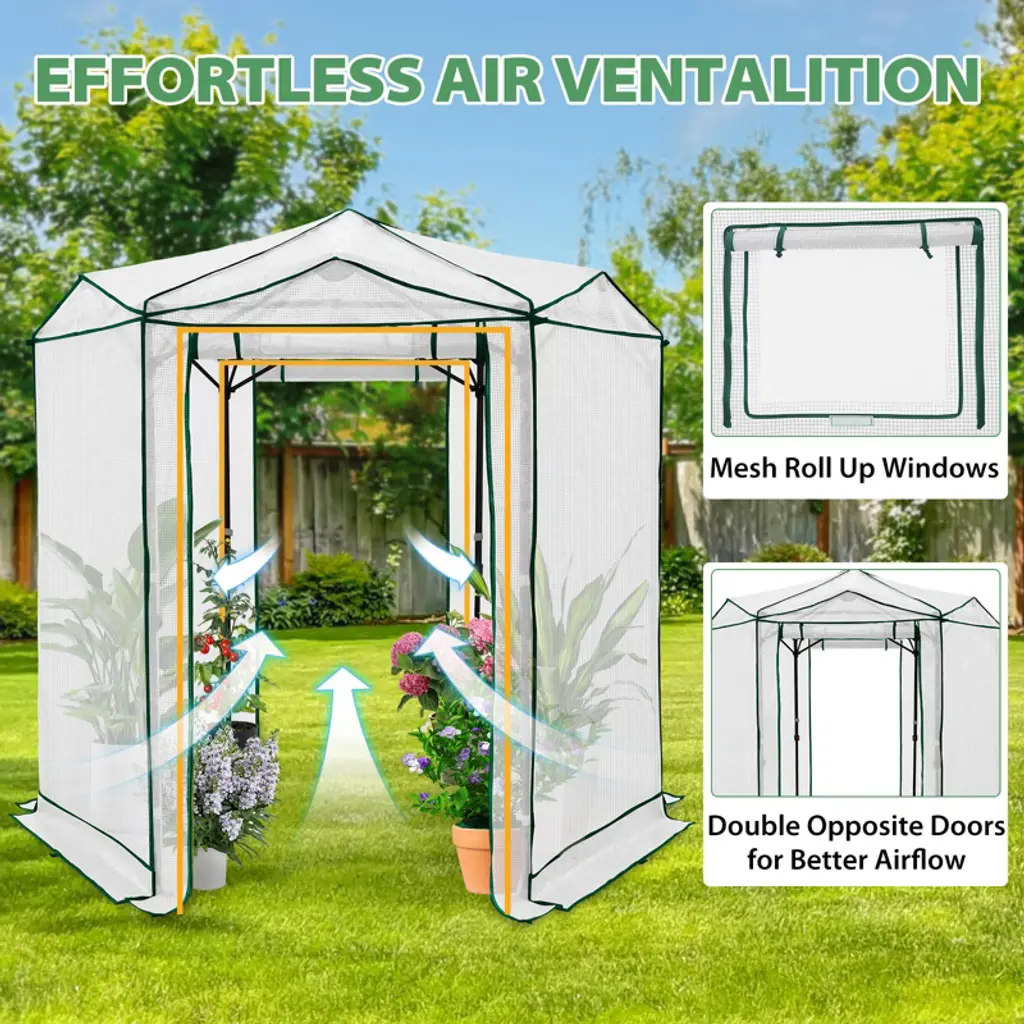 Give your plants the perfect growing environment with the EAGLE PEAK 6.6x6.6 ft Hexagon Pop-Up Greenhouse—an ideal portable shelter for gardeners of all levels! This spacious walk-in grow tent provides ample room for seed starting, protecting delicate plants, or extending your growing season. Designed for both indoor and outdoor use, its UV-resistant PE cover shields against harsh weather while allowing optimal sunlight. The hexagonal shape maximizes space and stability, and the instant pop-up design makes setup quick and hassle-free. Whether you're nurturing seedlings, flowers, or vegetables, this all-weather greenhouse offers durability, ventilation, and convenience in one sleek package. Elevate your gardening game with EAGLE PEAK!