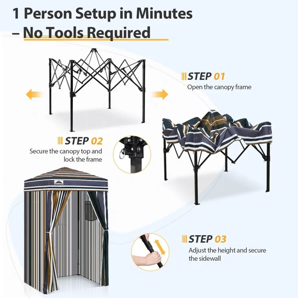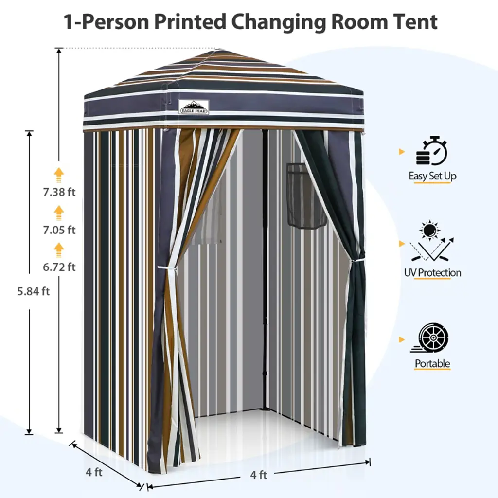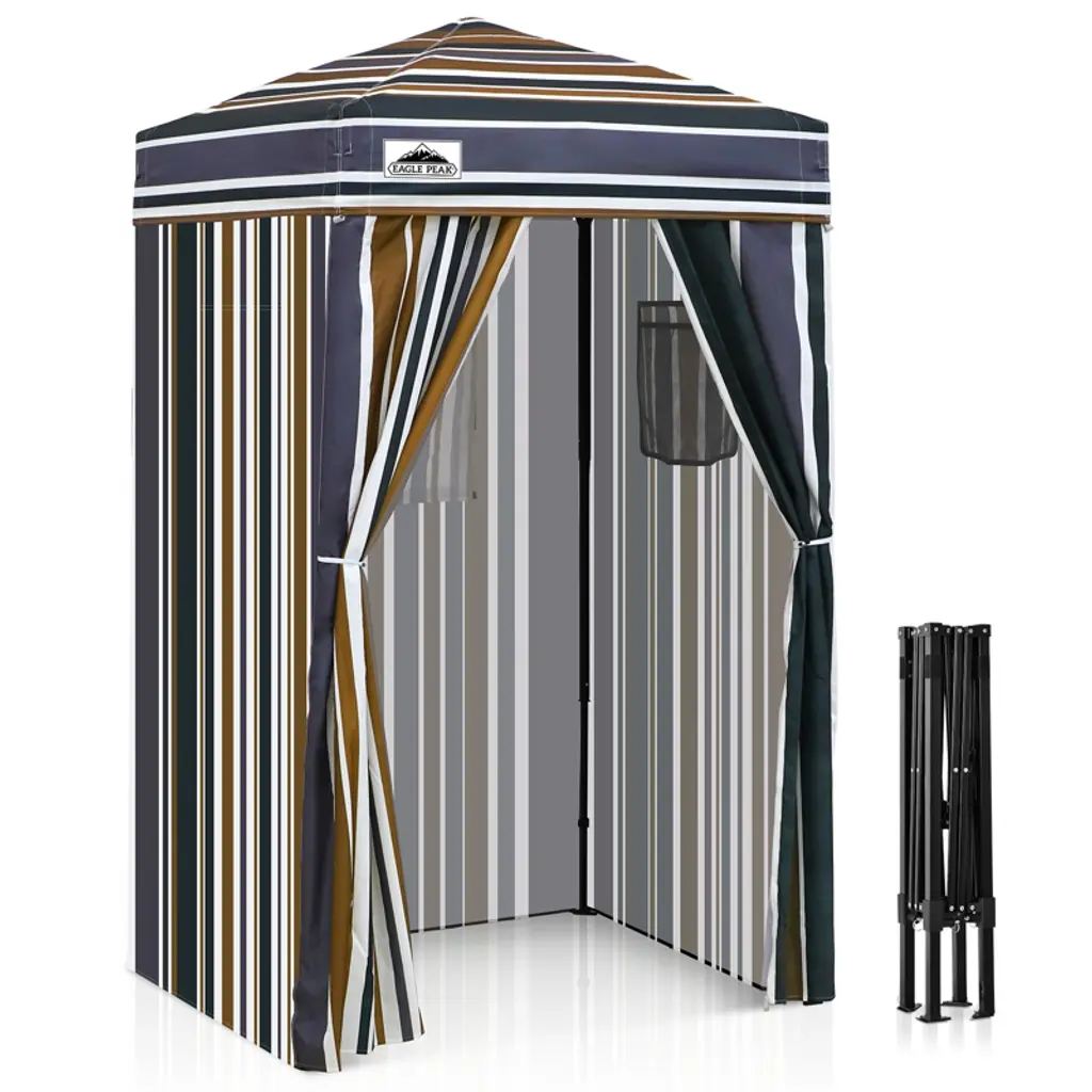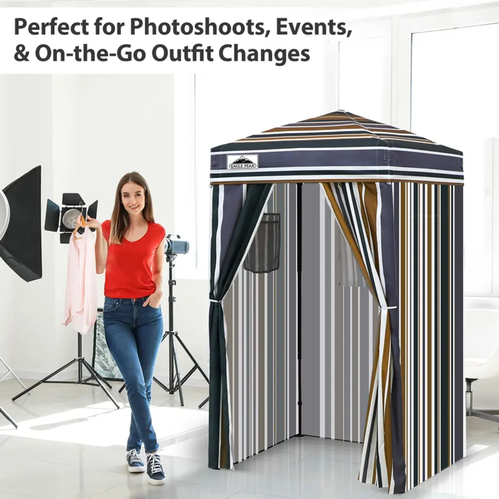 Eagle Peak Flex Ultra Compact 4X4 Pop-up Changing Room Canopy, Portable Privacy Cabana For Pool, Fashion Photoshoots, Or Camping (Brown Stripe)