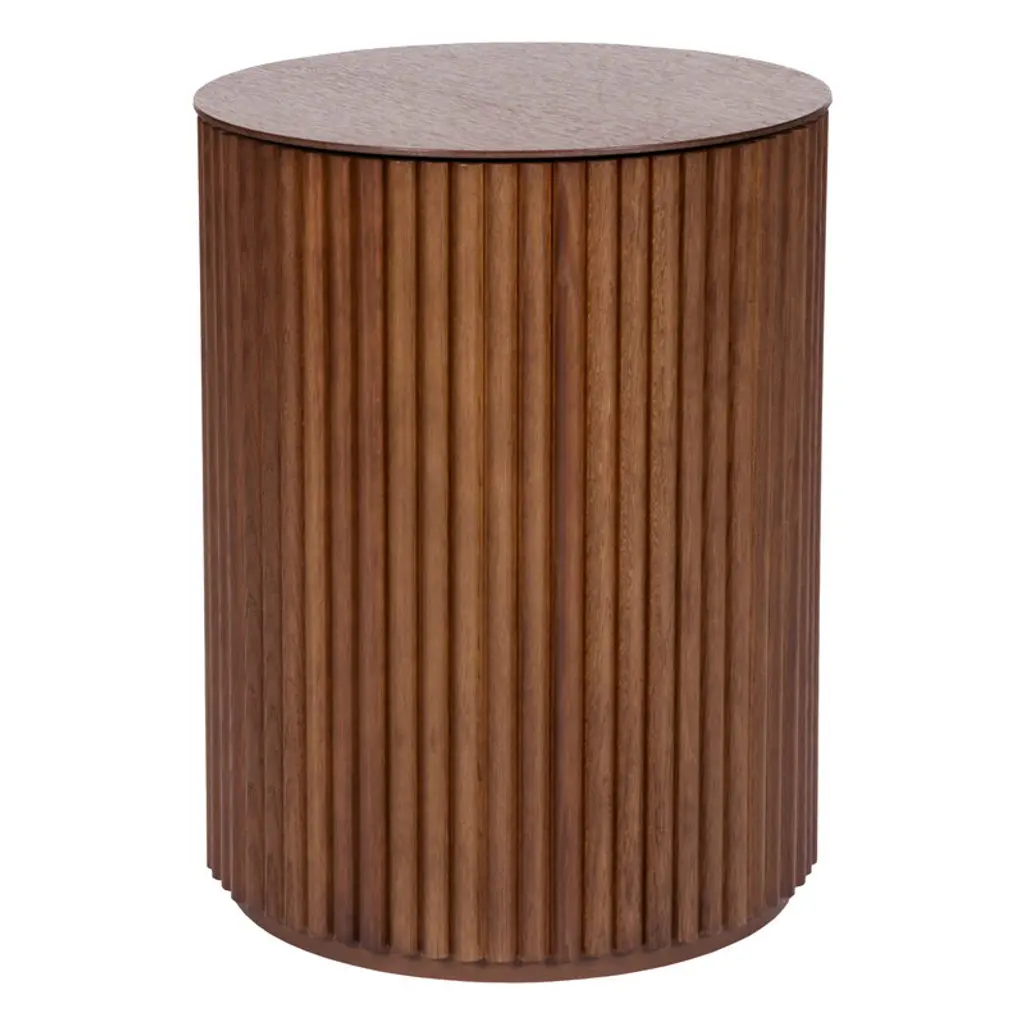 Whether displaying classic literature, a warm cup of tea or a frame that holds a cherished memory, the Eastchester chairside table welcomes it all with understated confidence and sculptural grace. Contemporary in style, this piece is crafted of cherry veneers in an espresso brown finish and features a sleek square frame and confident silhouette. Two open shelves provide ample display space and showcase a subtly curved ribbed interior that adds dimension and visual interest. The plinth base grounds the look with a refined touch while complementing the structured form of the table.