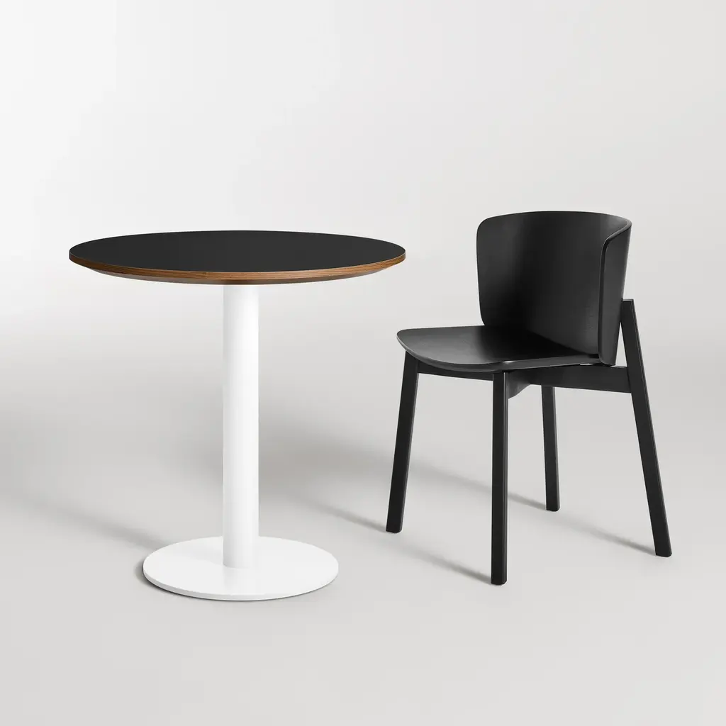 Frozen pizza or five-star feast, this biscuit of a table serves it up in style. A simple steel pedestal props up your choice of warm wood or a solid laminate top for a universally flattering table fit for any space and occasion.