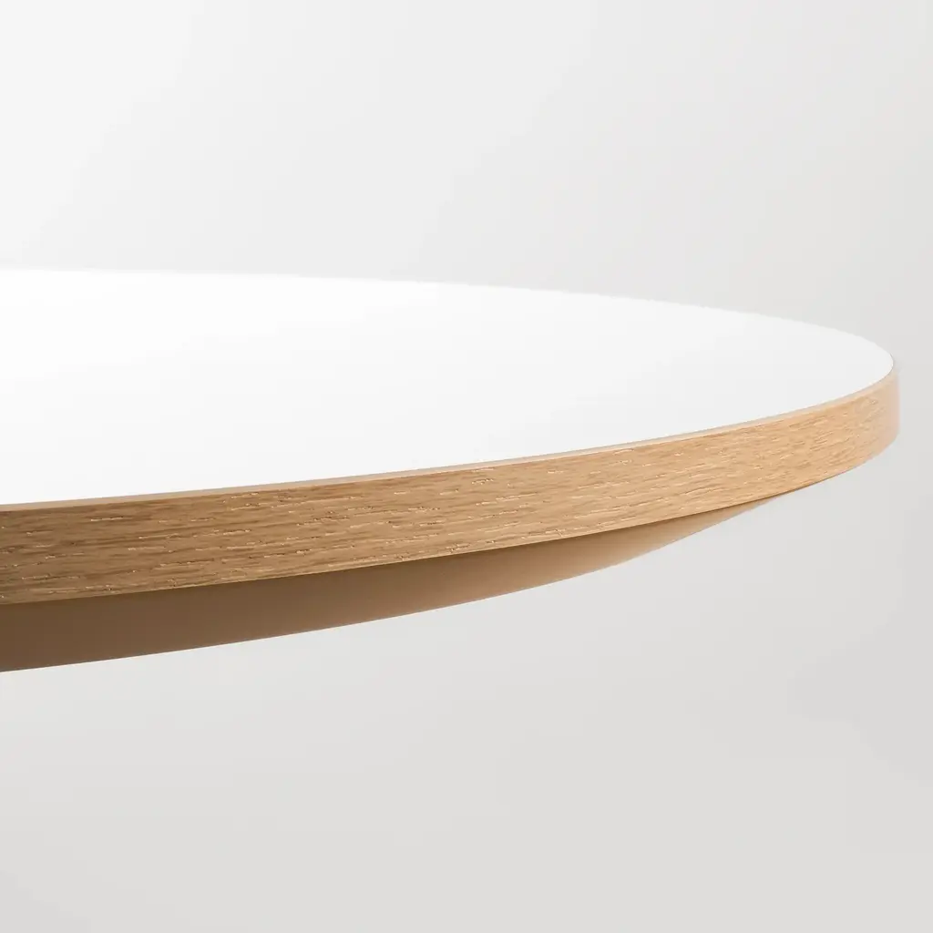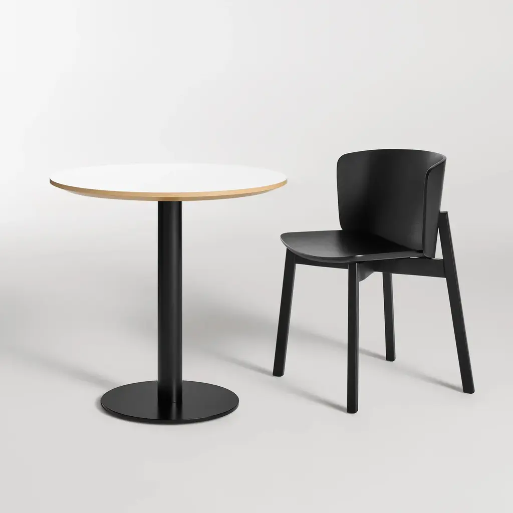 Frozen pizza or five-star feast, this biscuit of a table serves it up in style. A simple steel pedestal props up your choice of warm wood or a solid laminate top for a universally flattering table fit for any space and occasion.