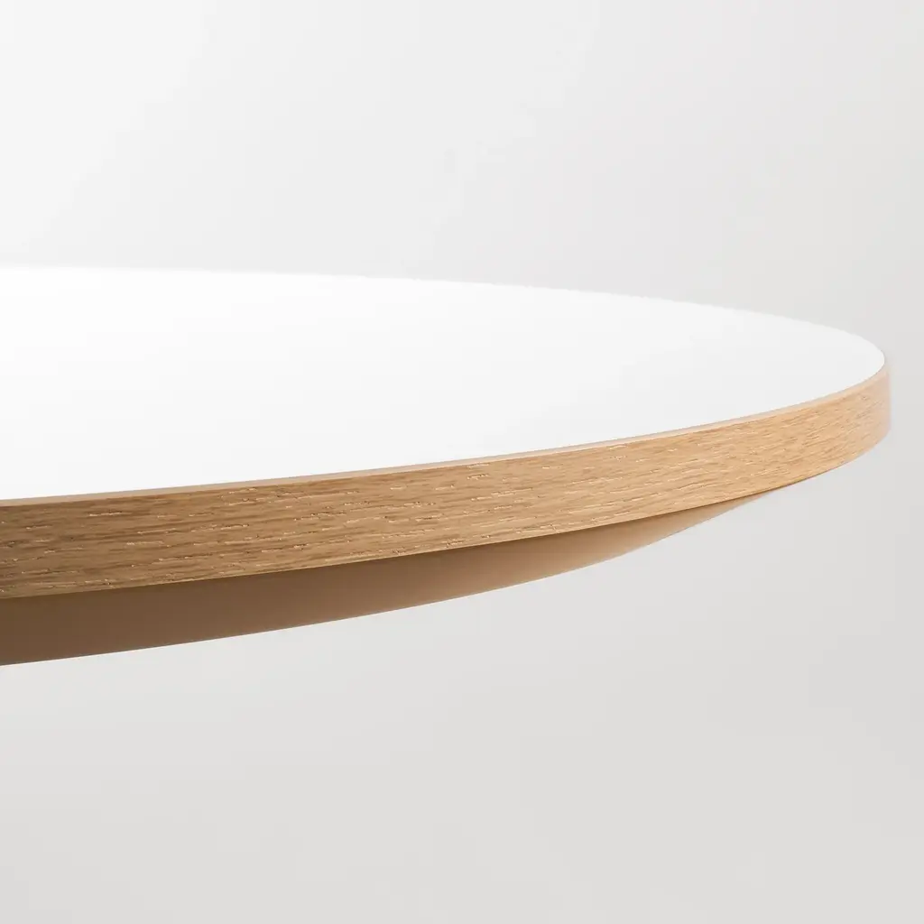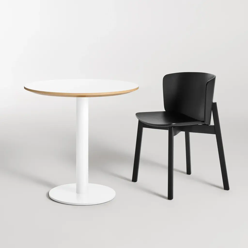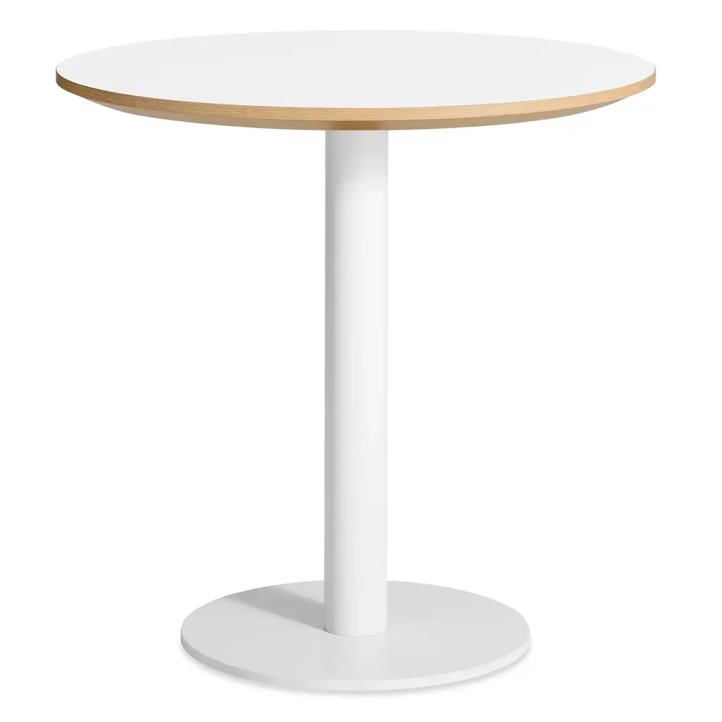 Frozen pizza or five-star feast, this biscuit of a table serves it up in style. A simple steel pedestal props up your choice of warm wood or a solid laminate top for a universally flattering table fit for any space and occasion.