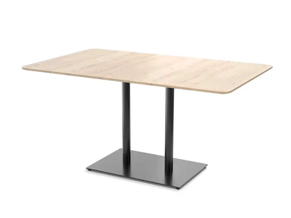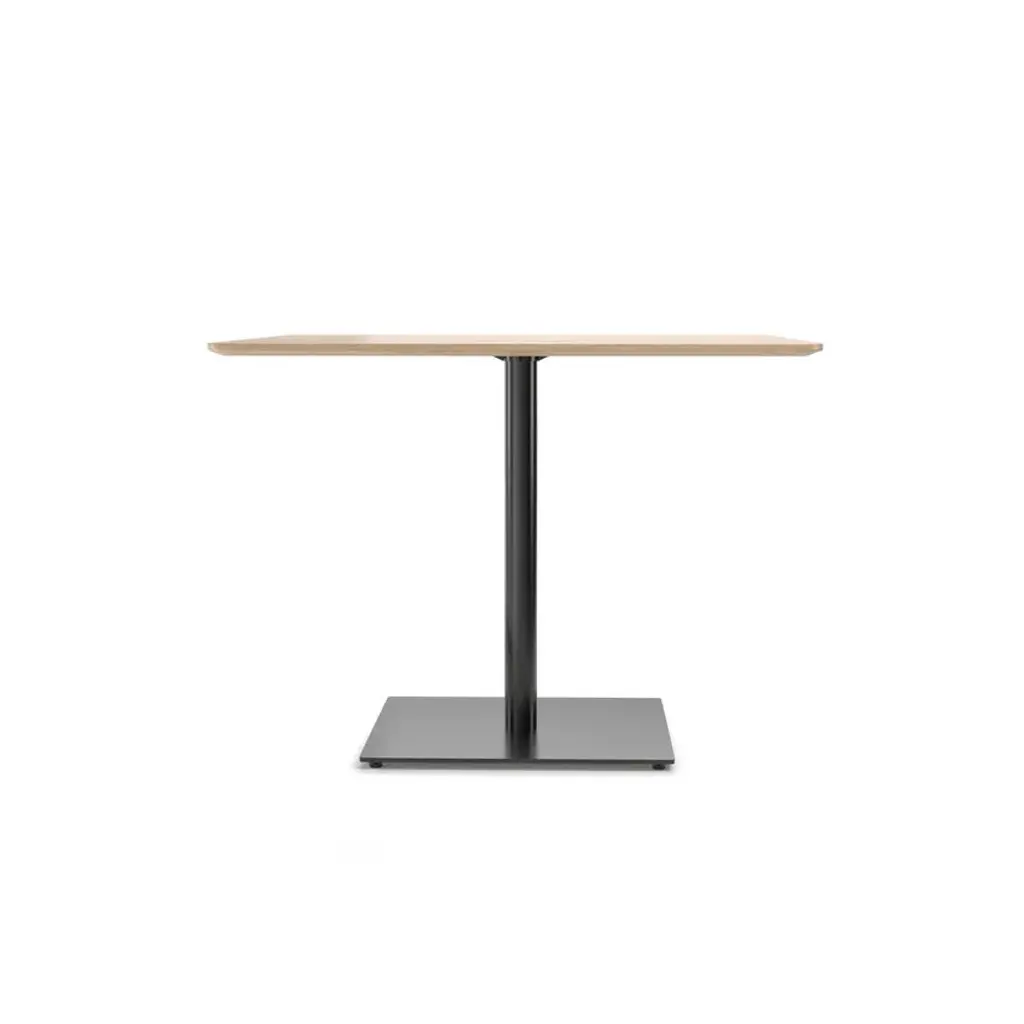 The core of our pedestal table is its steel base, made with a square or a round footprint. From the base emerges the central post, which is available in two heights. For a rectangular tabletop we recommend a base configured with two central posts.
