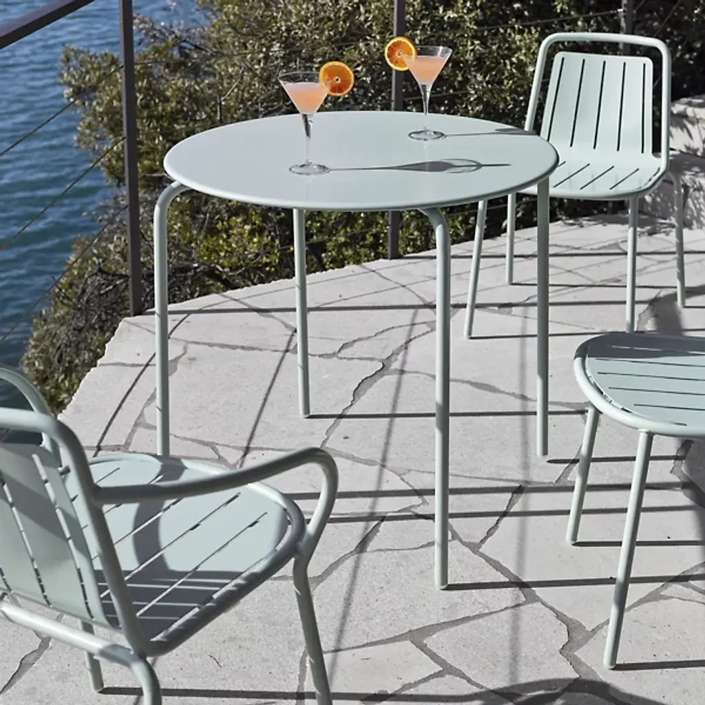 Make your day out in the sun a bit easier with the clean and convenient design of the Easy Round Outdoor Table from Connubia. The table presents itself with a minimalist design that takes a step back to the natural or manmade beauty of your patio or yard. It directs the eyes upward with slender tubular legs, topped with gentle curves. The open composition of the legs gives the lower greater freedom of movement. The design of the legs also allows for the stacking of multiple tables. A circular tabletop rounds out the piece with a timeless charm. A coating applied to the table gives it robust weather-resistant properties for enduring durability.