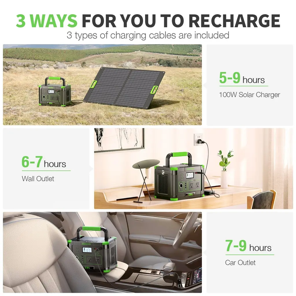 This is the ideal power solution for home, outdoor adventures, and emergency situations. With a true 500W capacity, it delivers reliable performance for a wide range of appliances, including electric grills, coffee makers, mini-fridges, microwaves, and even electric stoves. Designed for versatility, the Voyager 500 supports three convenient charging methods—AC wall outlet, 100W solar panel, or car outlet—allowing for a full recharge in just 6 to 9 hours thanks to its fast-charging technology. Despite its power, the Voyager 500 remains highly portable. Weighing only 6 kg and featuring a foldable handle, it's easy to carry wherever you go. Its innovative design includes a built-in wireless phone charger, eliminating the need for extra cables while keeping your devices powered on the move. With the ability to charge up to 10 devices simultaneously, the Voyager 500 features a wide range of ports: 2 AC outlets (110V), 3 Quick Charge 3.0 USB ports, 1 USB-C PD 60W port, 3 DC outputs (14V), and a wireless charging pad. Whether you're camping, traveling, or facing a power outage, the EBL Voyager 500 offers dependable, portable energy to keep your life running smoothly.