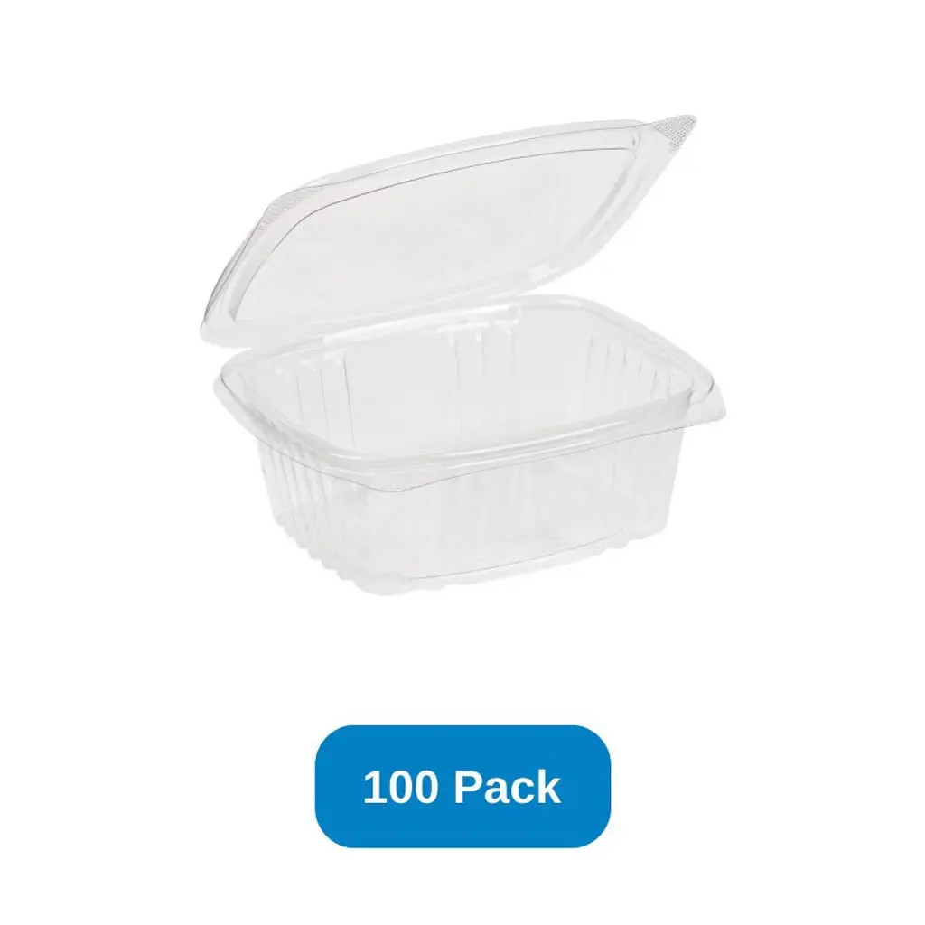 The Veridian collection 16 oz. PLA Take-Out Containers offer a durable and clear design for cold food storage. Made from plant-derived PLA, these containers are BPI-certified compostable in commercial facilities and meet ASTM D-6400 standards. They are freezer-safe, leak-proof, stackable, and contain no added PFAS. Designed for compliance with labeling requirements in Washington State and Colorado, each case includes 300 containers and 300 lids. *Note: PLA begins to melt at 105° F; store out of direct sunlight.*