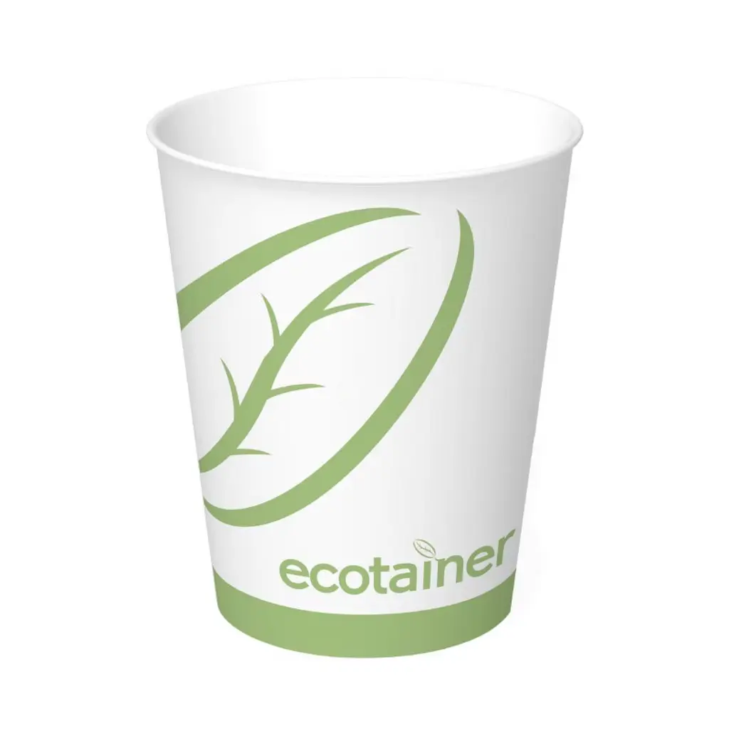 The Ecotainer 12 oz. Hot Cup offers a sustainable solution for serving hot beverages and foods. These compostable paper cups are lined with PLA, a bio-resin derived from corn, and are made with SFICertified fiber sourced from responsibly managed US forests. Designed for commercial composting within 180 days, these cups are heat-stable, freezer and refrigerator safe, and BPI certified compostable. Lids sold separately. No PFAS added.